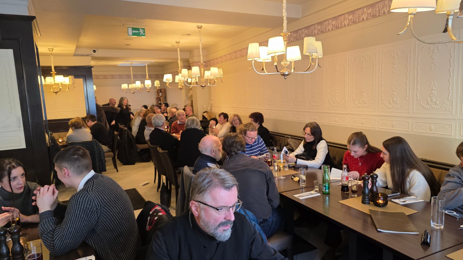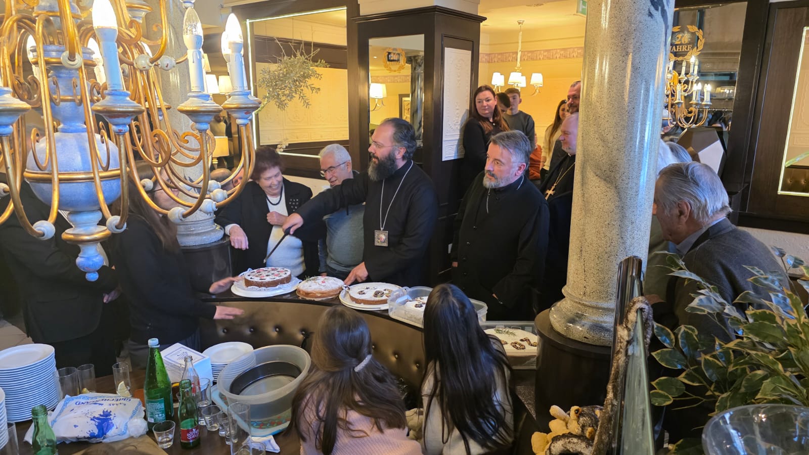 In einem griechischen Restaurant der Region fand ein Treffen der Kirchengemeinde statt, wo Seine Eminenz die traditionelle Vasilopita segnete, anschnitt und an die Gläubigen verteilte. Dort bot sich die Gelegenheit zur Begegnung und zum Austausch von Wünschen für das neue Jahr 2026.