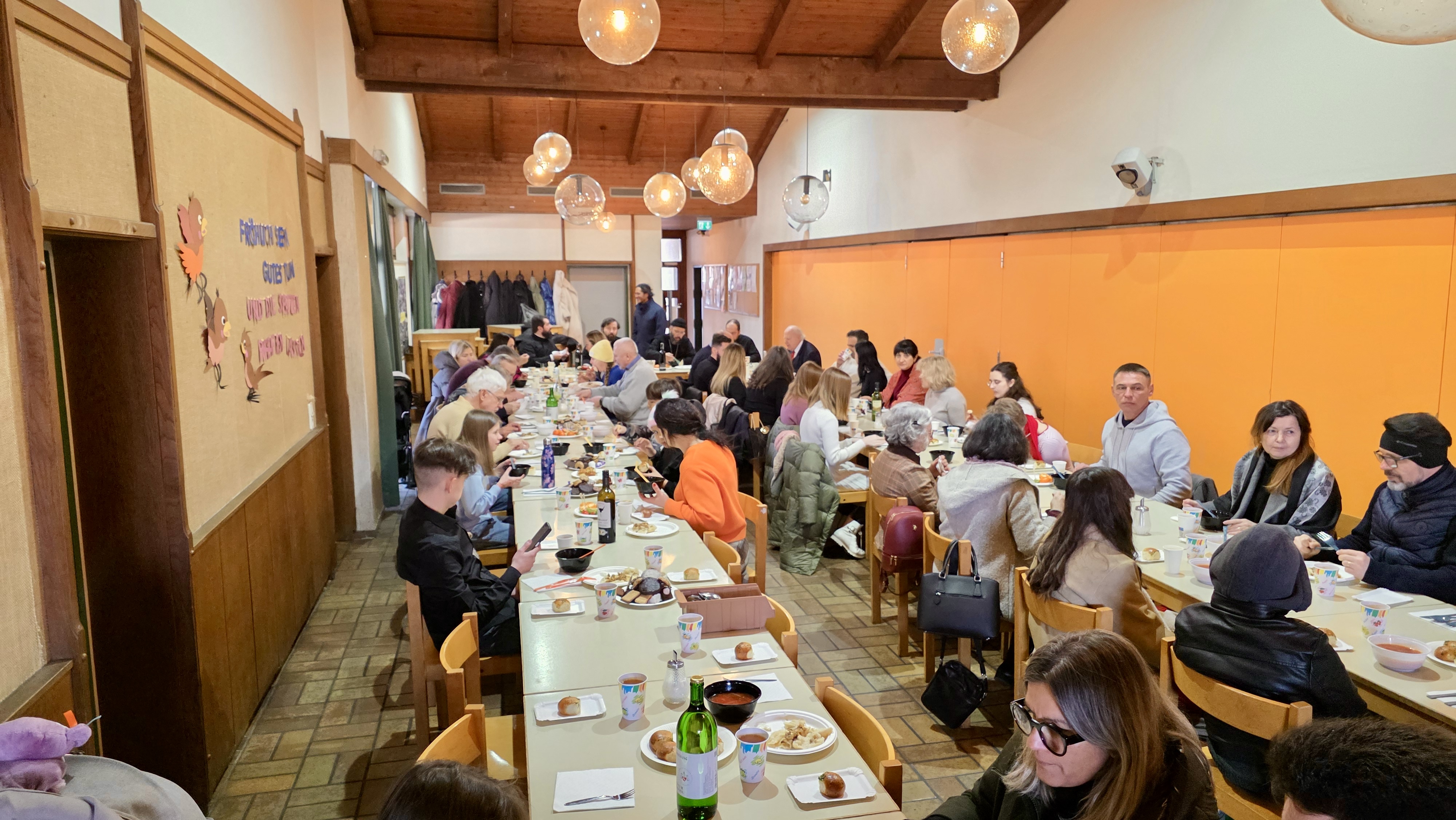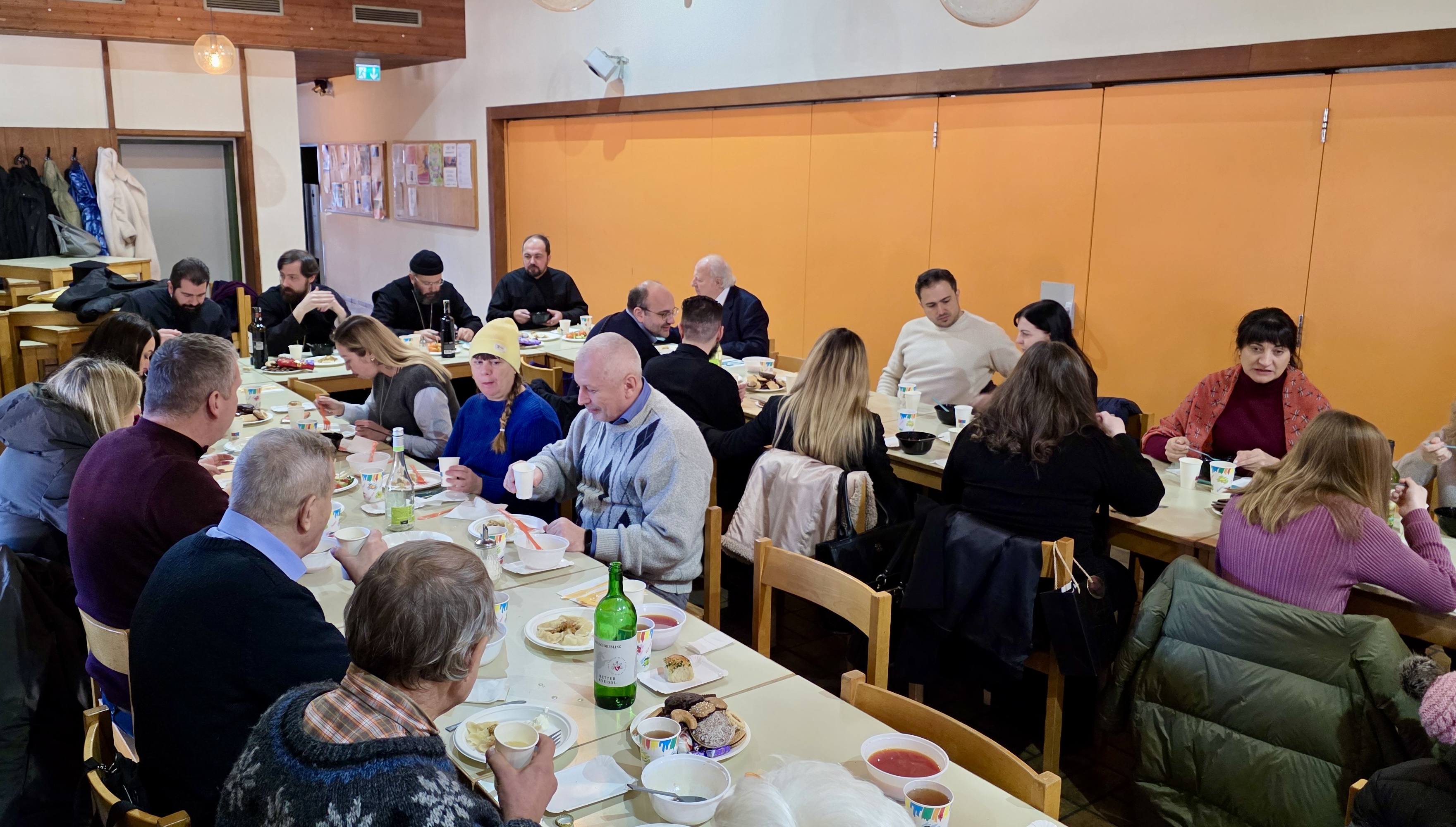 Nach dem Ende der Göttlichen Liturgie fand eine Agape statt, wo die Gläubigen die Gelegenheit hatten, mit den Bischöfen zu sprechen, von den tragischen Situationen zu erzählen, die sie inmitten des Krieges erleben – sowohl sie selbst als auch ihre Angehörigen. Die Bischöfe versuchten, sie geistlich zu stärken, indem sie ihnen Mut und Kraft zugesprochen haben. Der Besuch schloss mit einem festlichen Mahl, das vom Priester und den Gläubigen der Gemeinde vorbereitet worden war.