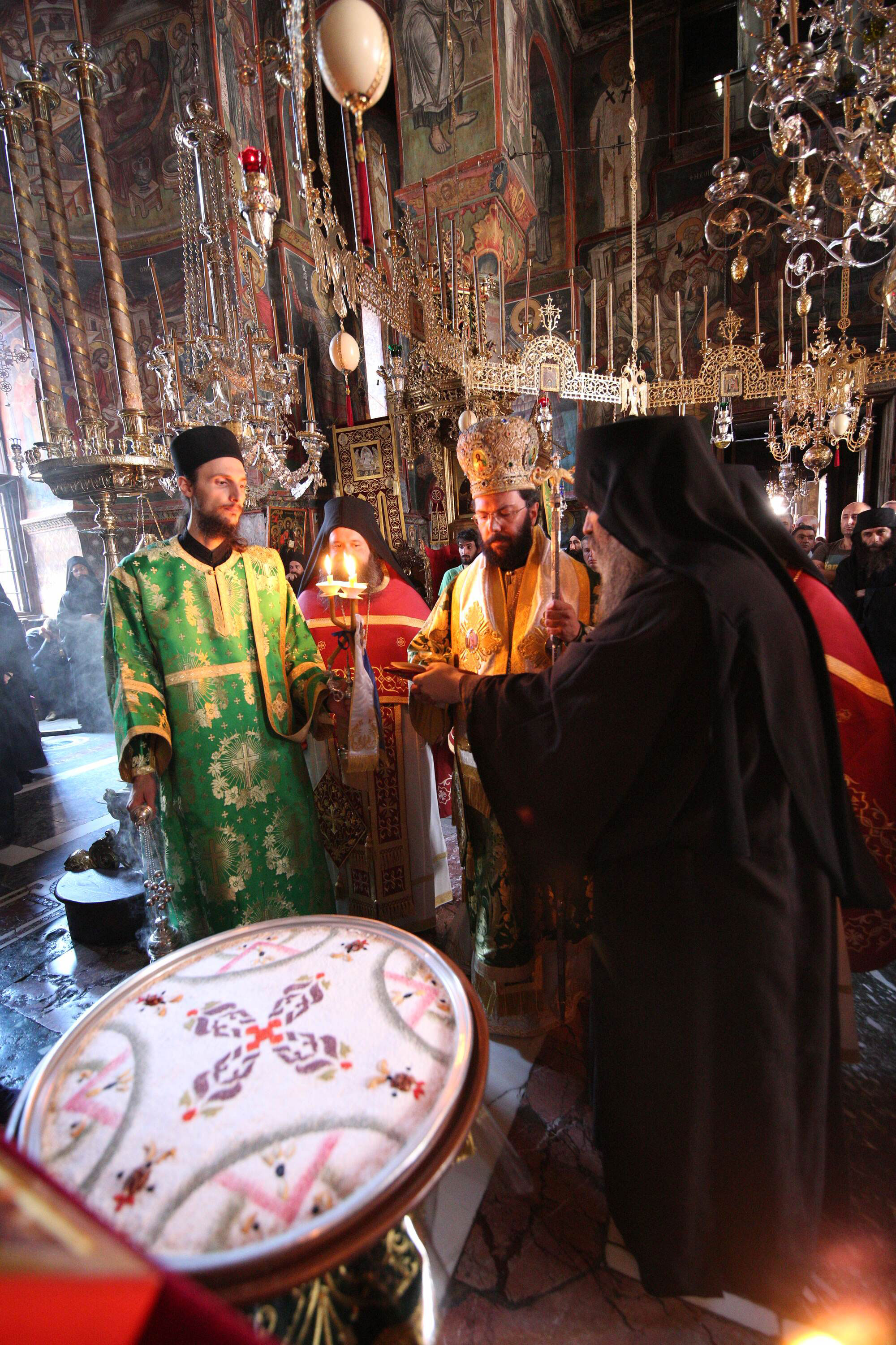 Am Mittwochabend, 22. Juli, wurde die nächtliche Vigil von zahlreichen Mönchpriestern unter Anwesenheit von Mönchen und Gläubigen zelebriert. Zusammen mit Metropoliten Arsenios zelebrierten auch Bischof Nikolaos von Amathous sowie die Äbte der größten Klöster der Mönchrepublik (Karakalos, Filotheos und Vatopedi): Den Chor leiteten die Brüder vom Karakaloskloster, es beteiligten sich daran aber auch Vertreter aus anderen Klöster und Sketen.