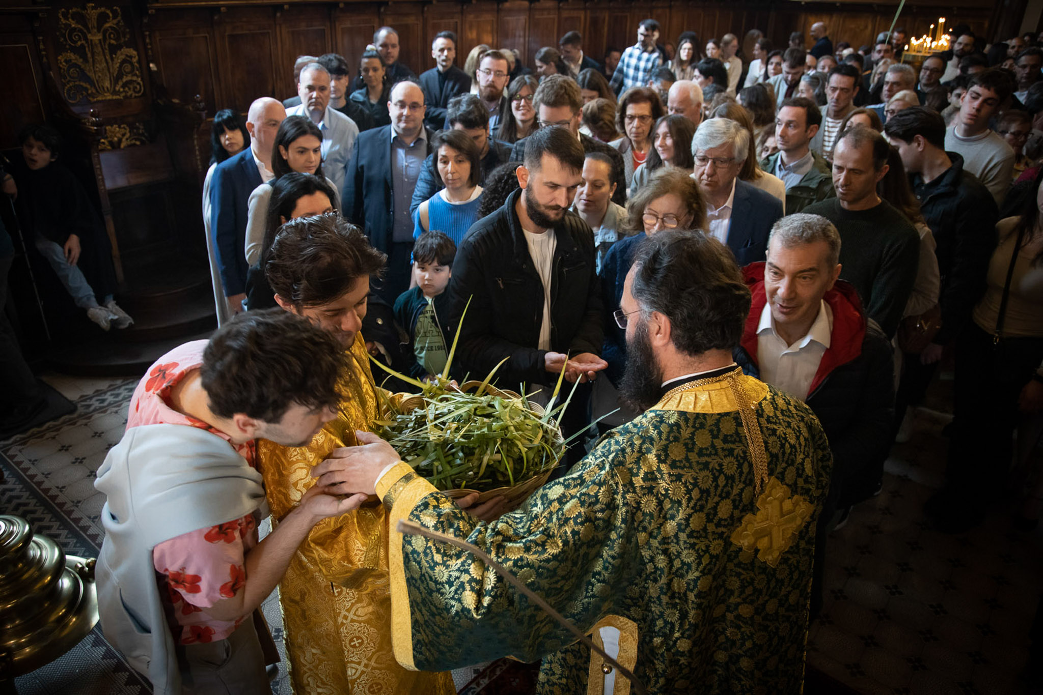 Am Sonntag, den 28. April 2024, hat Seine Eminenz Metropolit Arsenios von Austria, Exarch von Ungarn, die Feierliche Erzbischöfliche Liturgie zum Palmsonntag in der Kirche zum Heiligen Georg in Wien geleitet. Seine Eminenz wurde vom Generalvikar Archimandrit Maximos Rudko, vom Erzpriester des Ökumenischen Throns Ioannis Nikolitsis, von den Presbytern Neboisa Grdinic und Aristides Ganosis, vom Erzdiakon der Metropolis Pater Erasmus Brankovski sowie Diakon Stephan Lorbek liturgisch begleitet. Nach dem Ende der Göttlichen Liturgie wurde Herr Matthias El Far zum Lektor ernannt. Schließlich segnete Metropolit Arsenios in Anwesenheit des griechischen Botschafters George Iliopoulos und der Konsulin Elina Kyriakopoulou die Palmzweige, welche er im Anschluss an die Gemeinde verteilte.