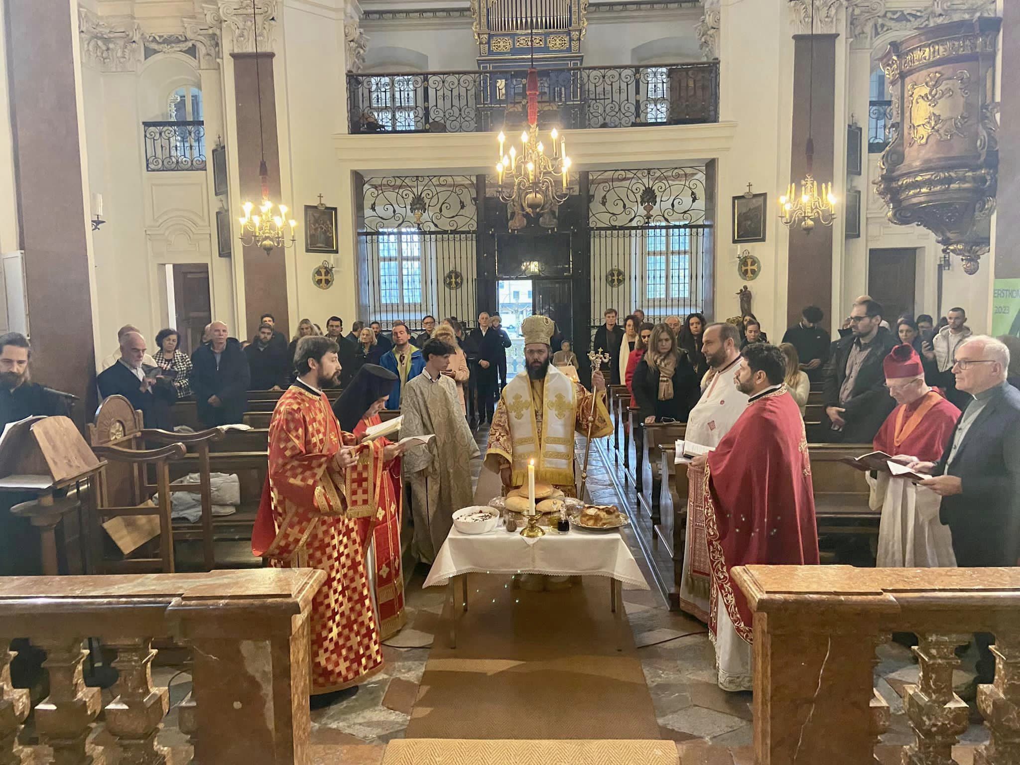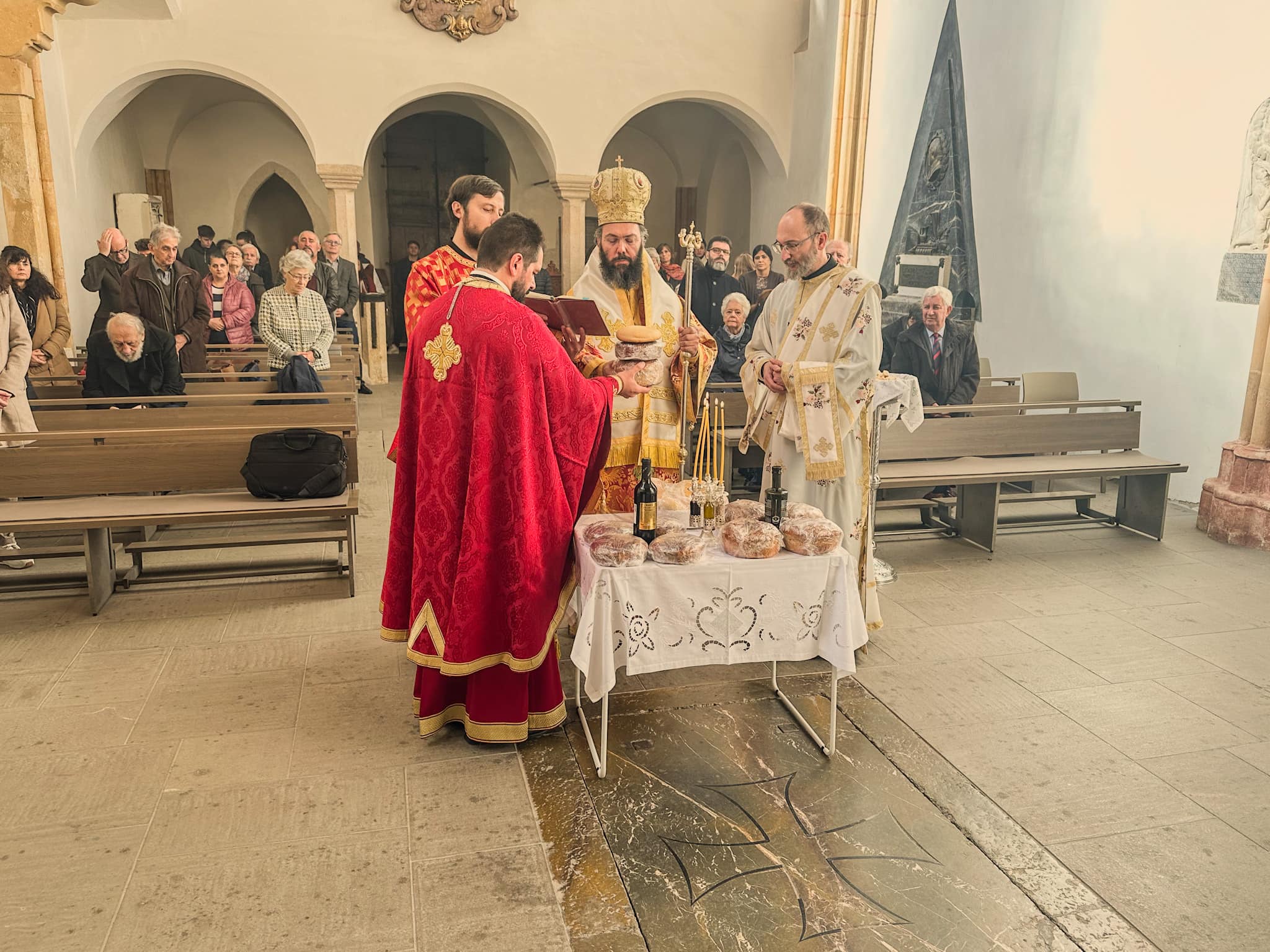 Am Mittwoch, den 1. November 2023, beging die orthodoxe Gemeinde zu den Heiligen uneigennutzigen Ärzten in Graz das Fest zu Ehren ihrer Schutzpatronen mit einer Erzbischöflichen Göttlichen Liturgie. Metropolit Arsenios von Austria, Exarch von Ungarn und Mitteleuropa stand der Liturgie vor und wurde liturgisch begleitet von Erzpresbyter P. Dimitrios, Erzdiakon P. Maximos und Diakon Stefan, während im Gebet Diakon P. Zeljko die Feier begleitete. Zahlreiche Gläubige nahmen an der Feier der Gemeinde teil und trugen auf vielfältige Weise zur Freude der Ortskirche bei, sowohl in der Kirche als auch im Pfarrhaus.