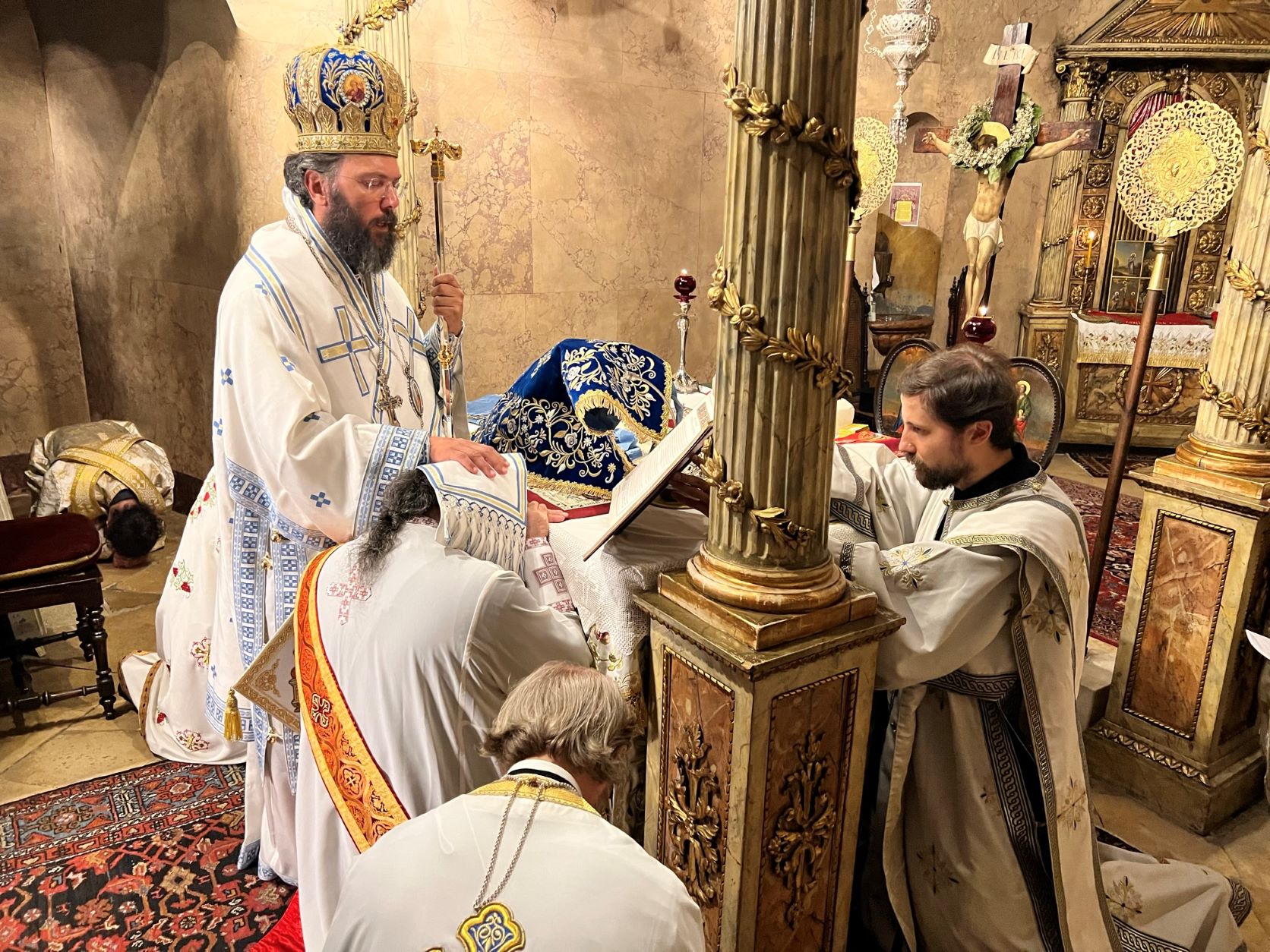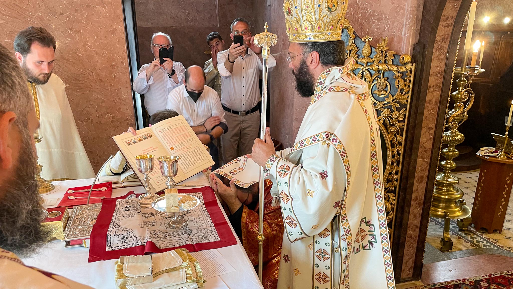 Am Sonnntag, den 26. Juni 2022, am Gedenktag des hl. David von Thessaloniki, feierte Seine Eminenz Metropolit Arsenios gemeinsam mit Priestermönch Bartholomäus Ungureanu, Priester Aristeidis Ganosis und Erzdiakon Maximos Rugyko die Göttliche Liturgie in der Kirche zum hl. Georg in Wien. Während der Göttlichen Liturgie weihte Metropolit Arsenios den Mönch P. Jakob zum Diakon.