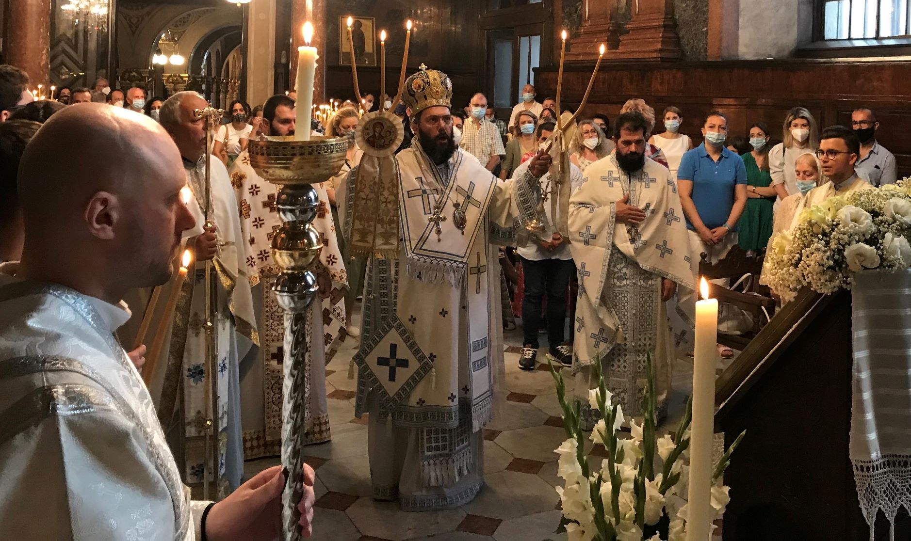 Am Wochenende des 14./15. August 2021 wurde in der Kathedrale zur Hl. Dreifaltigkeit in Wien das Hochfest der Entschlafung Mariens feierlich begangen. Nach der vorangegangenen 14-tägigen Fastenzeit mit den täglichen Feiern der Göttlichen Liturgie und des Paraklisis zur Gottesgebärerin begannen die Feierlichkeiten des Festes mit der Vesper mit anschließender Artoklasia („Brotbrechen“) und Enkomia („Grabgesängen) am Abend des 14. August. Gemeinsam mit Metropolit Arsenios zelebrierten die Erzpriester Alexander Lapin und Nikolaus Rappert, die Priester Mykola Lesiuk, Athanasius Buk und Nemanja Komnenov, sowie Erzdiakon Maximos Rugyko den Gottesdienst. Der Vesper folgte das kleine Apodeipnon mit den Xairetismoi („Freue dich“) an die Gottesmutter.