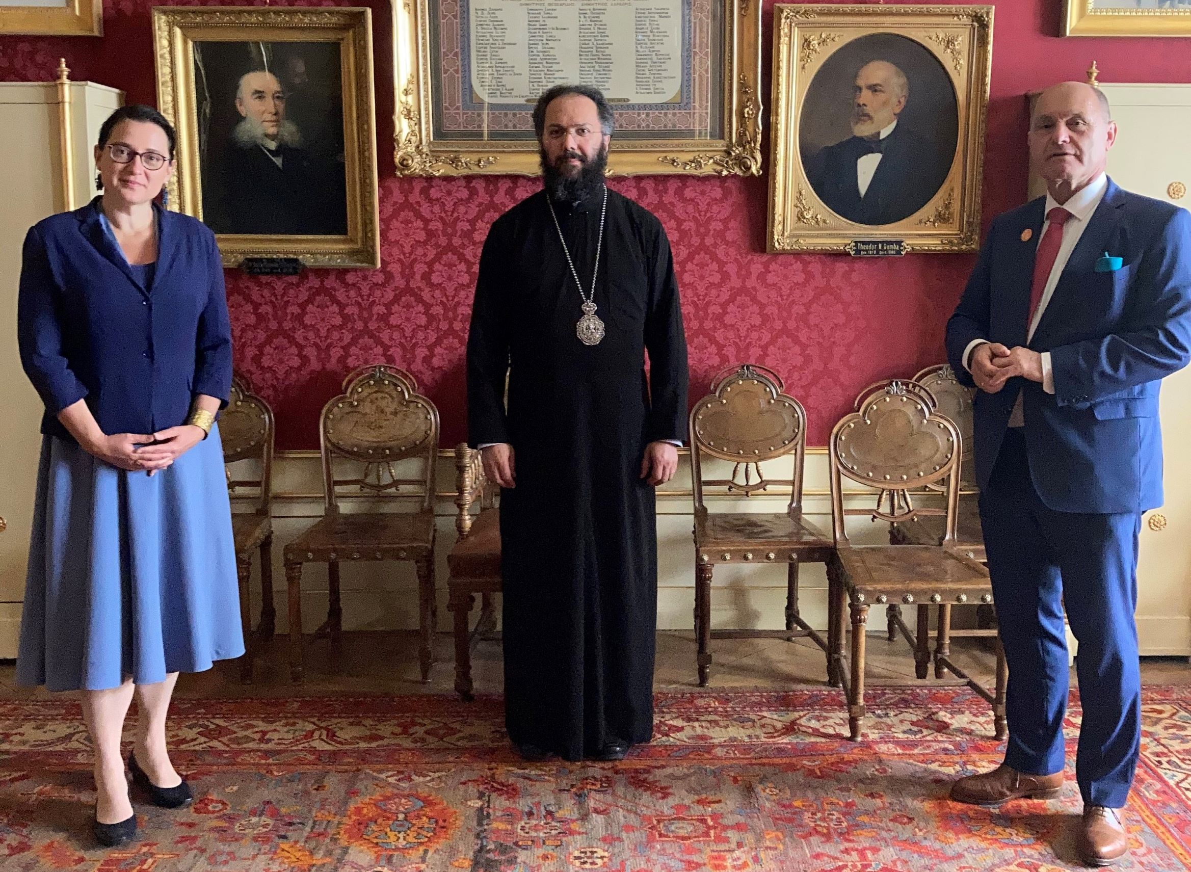 Am Dienstag den 11. Mai 2021 empfing Metropolit Arsenios von Austria den Präsidenten des Nationalrates Mag. Wolfgang Sobotka und die Abgeordnete zum Nationalrat MMag. Dr. Gudrun Kugler zu einem ausführlichen Gespräch in der Metropolis von Austria. In entspannter Atmosphäre fand ein reger Austausch zur Lage der Orthodoxie in Österreich und der Welt, sowie der Geschichte der Orthodoxie in Österreich statt. Auch über das Selbstverständnis der Orthodoxen Kirche und ihrer Gläubigen als Teil Österreichs wurde gesprochen. Ebenso kamen Anliegen der Orthodoxen Kirche, wie etwa die Möglichkeit zur steuerlichen Absetzbarkeit von nicht-verpflichtenden Kirchenbeiträgen zur Sprache. Im Anschluss an das Gespräch erhielten die hohen Gäste einen Einblick in die Büros der Metropolis von Austria und besuchten gemeinsam mit dem Metropoliten auch die Kathedrale zur Hl. Dreifaltigkeit.