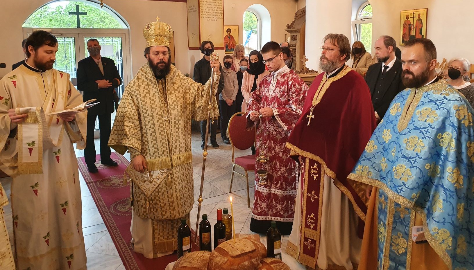 Am Samstag, den 19. Juni 2021, reiste Metropolit Arsenios von Austria nach Budapest. In der Kapelle zu den hll. Hierotheos und Stephan nahm er an der Göttlichen Liturgie teil, die Bischof Paisios von Apameia mit Erzdiakon Maximos Rugyko feierte. Neben Klerikern nahmen auch Gläubige des ungarischen Exarchats an der Liturgie teil und gratulierten Bischof Paisios zu seinem Namenstag.