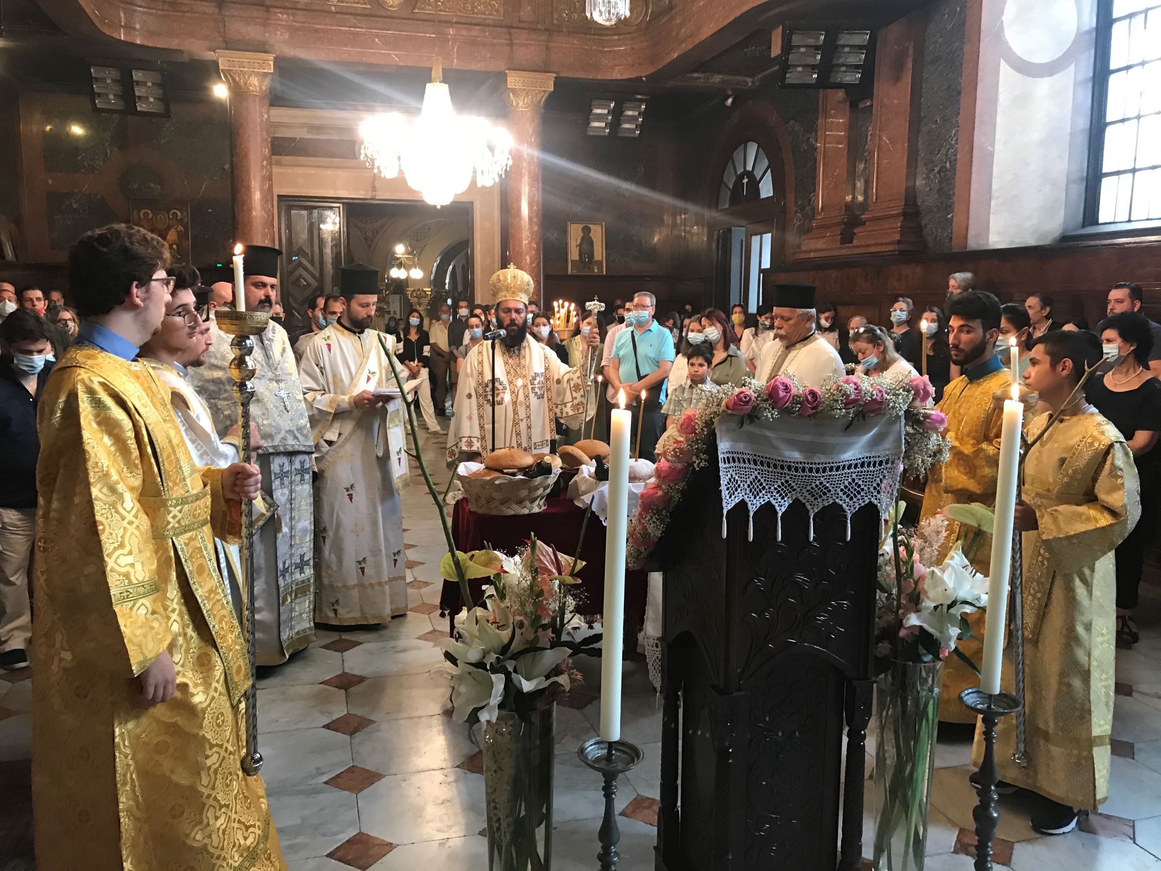 Am Abend des 14. August 2020 feierte Metropolit Arsenios gemeinsam mit den Klerikern und zahlreichen Gläubigen der Metropolis von Austria die Vesper zum Fest der Entschlafung der Gottesgebärerin. Am Ende der Vesper wurde die Artoklasie gefeierert und es folgten die Lobpreisungen (Enkomia) auf die Gottesgebärerin, sowie der Gruß der Gottesbärerin, beschlossen vom gemeinsamen Apodeipnon.