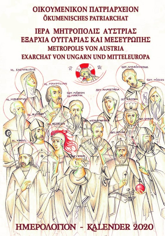 Der neue Kalender der Metropolis von Austria für das Jahr 2020 ist soeben erschienen. Der Kalender ist zweisprachig in griechischer und deutscher Sprache. Thematisch widmet der Kalender sich besonders den lokalen Heiligen der Metropolis von Austria und des Exarchats von Ungarn, d. h. Heiligen, die auf den Gebieten des heutigen Österreichs und Ungarn lebten und wirkten. „Heilige sind Quellen der Gnade und des Segens für die Region. Sie sind hell strahlende Wegweiser auf dem alltäglichen Weg der Menschen“, wie Metropolit Arsenios in seinem Vorwort betont.