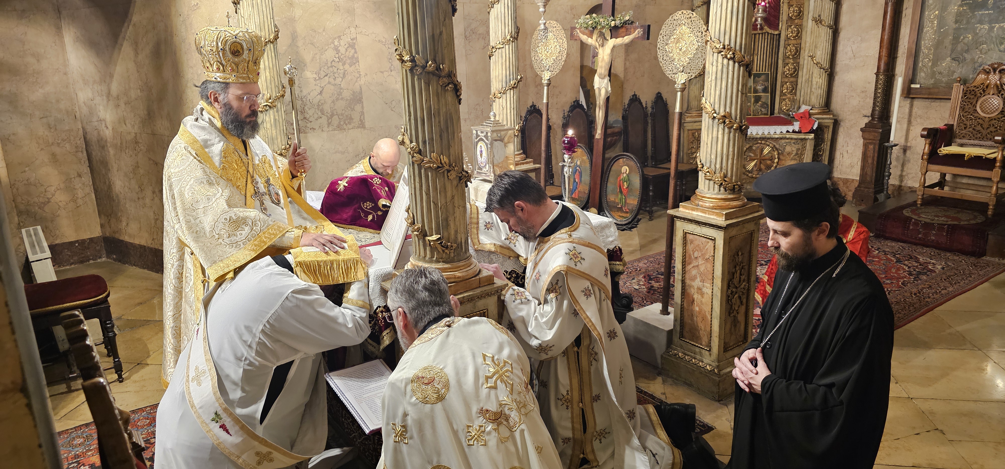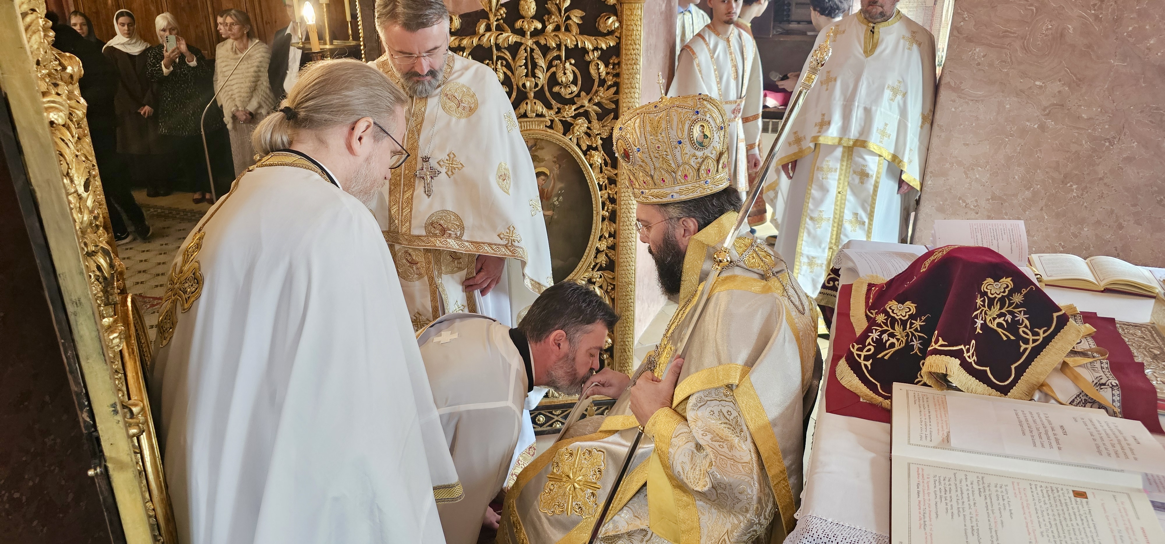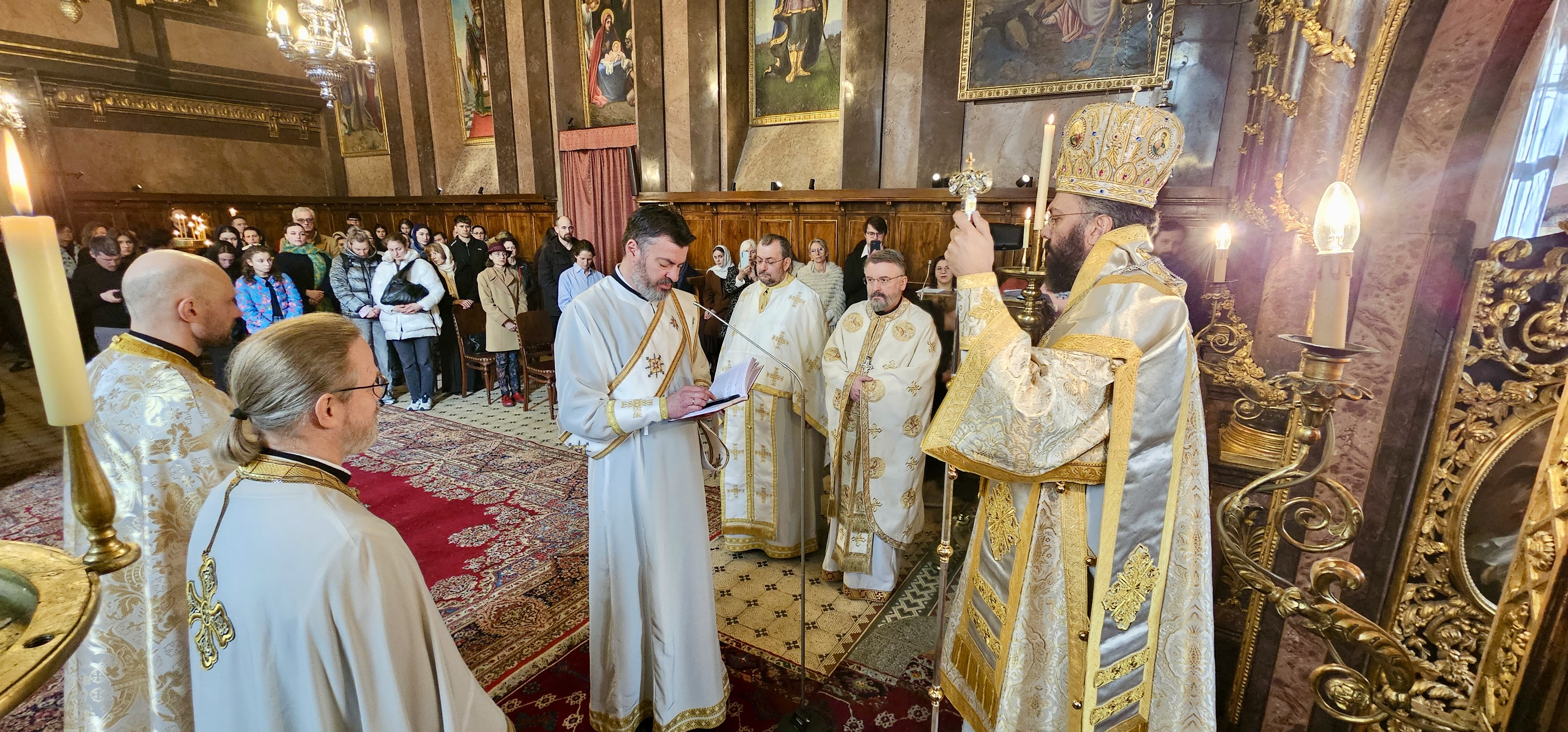Am Samstag, dem 7. März 2026, stand Seine Eminenz Metropolit Arsenios von Austria der Erzbischöflichen Göttlichen Liturgie in der Kathedrale zur Heiligen Dreifaltigkeit in Wien vor. Stavrophor Ökonom Nebojsa Grdinic, Priestermönch Savvas Kucenko sowie die Diakonen Markus Peter und Cedomir Mijic begleiteten Seine Eminenz liturgisch. Im Gebet war auch Seine Exzellenz Bischof Maximos von Aristi anwesend. Während der Göttlichen Liturgie wurde Diakon Marcus Peter zum Presbyter geweiht. Er wird künftig den pastoralen Dienst in der Region Vorarlberg versehen.