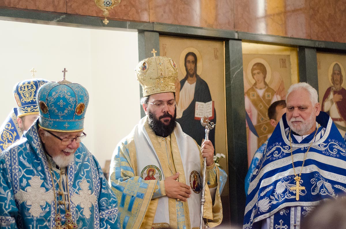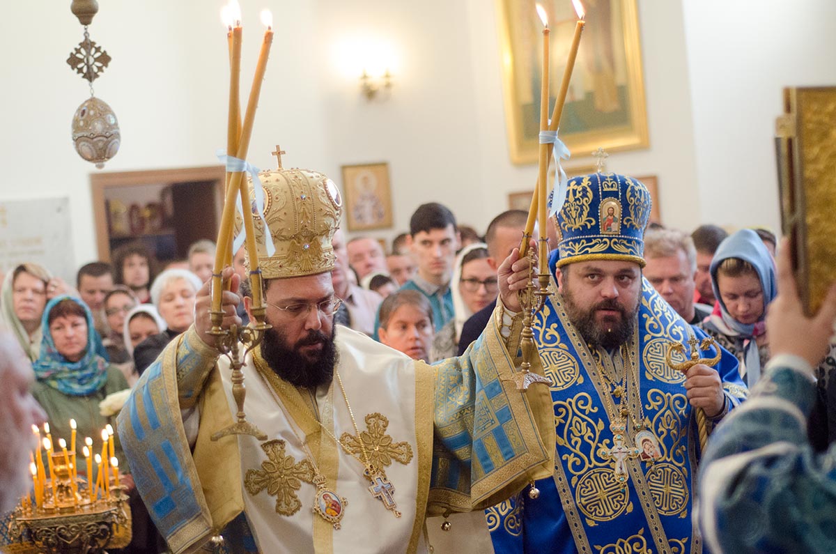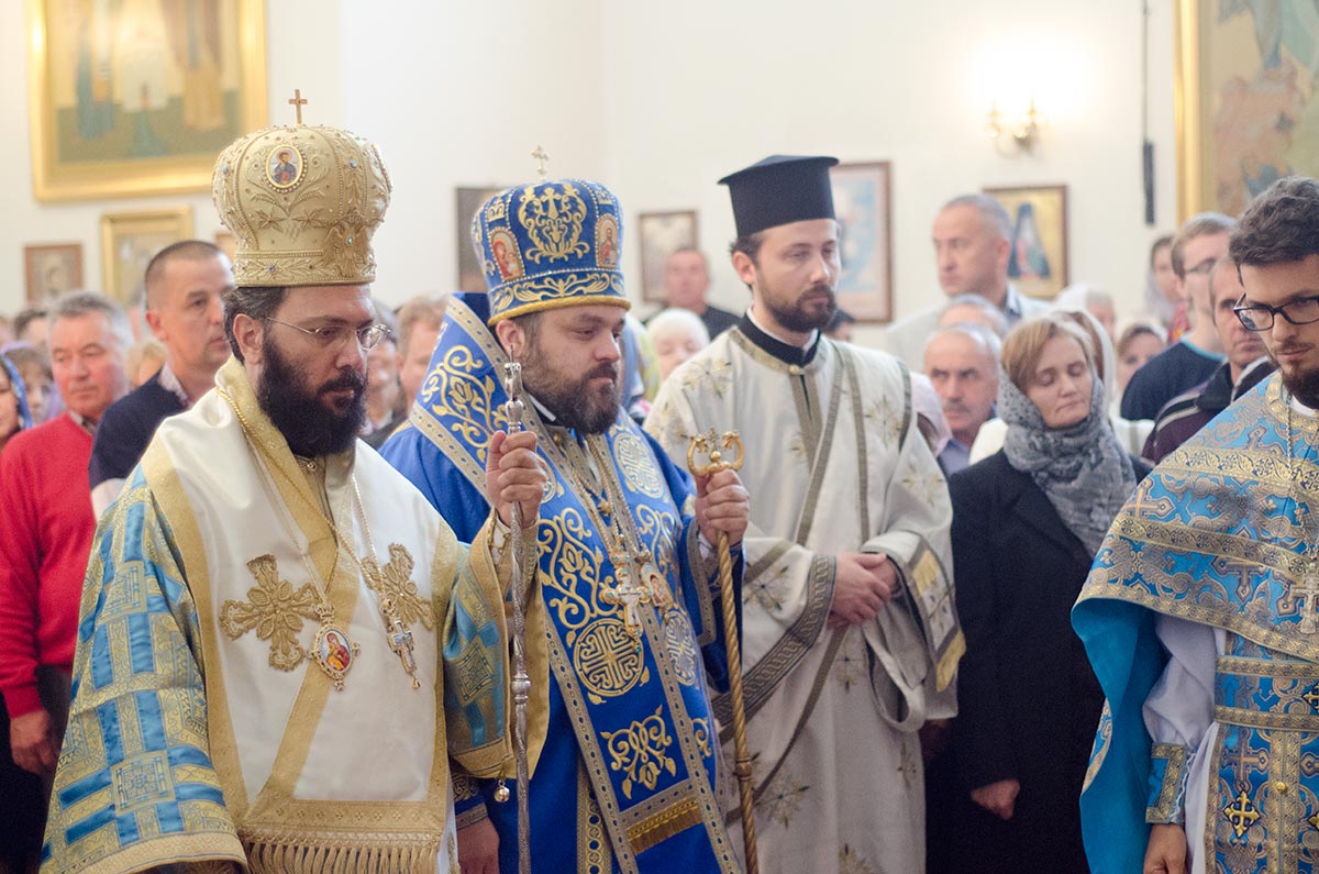 Τήν ἑπομένη, Κυριακή 14 Ὀκτωβρίου, ὁ Σεβασμιώτατος Ποιμενάρχης μας προεξῆρχε παρουσίᾳ ἑκαντοτάδων πιστῶν στόν Ἱ.Ν. τοῦ Ἁγίου Βεντσεσλάου, ἡγεμόνος τῆς Βοημίας καί προστάτου τῆς Τσεχίας, τῆς Θείας Λειτουργίας συλλειτουργούντων τοῦ Σεβασμιωτάτου Μητροπολίτου Ὀλομόουτς καί Μπρνό κ. Συμεών, τοῦ Θεοφιλεστάτου Ἐπισκόπου Σουμπέρκ κ. Ἡσαΐα, πλείστων Πρεσβυτέρων καί Διακόνων τῆς Ἱερᾶς Μητροπόλεως. Τόν θεῖο λόγο ἐκήρυξε ὁ Σεβασμιώτατος Μητροπολίτης Ὀλομόουτς καί Μπρνό κ. Συμεών, ὁ ὁποῖος ἀναφέρθηκε στήν ἑορτή τῆς Ἁγίας Σκέπης, συμφώνως τοῦ Ἰουλιανοῦ ἡμερολογίου, τονίζοντας τήν σημασία τῆς παρουσίας τῆς Ὑπεραγίας Θεοτόκου στήν ζωή τῆς ἐκκλησίας, ἀλλά καί τῶν πιστῶν.