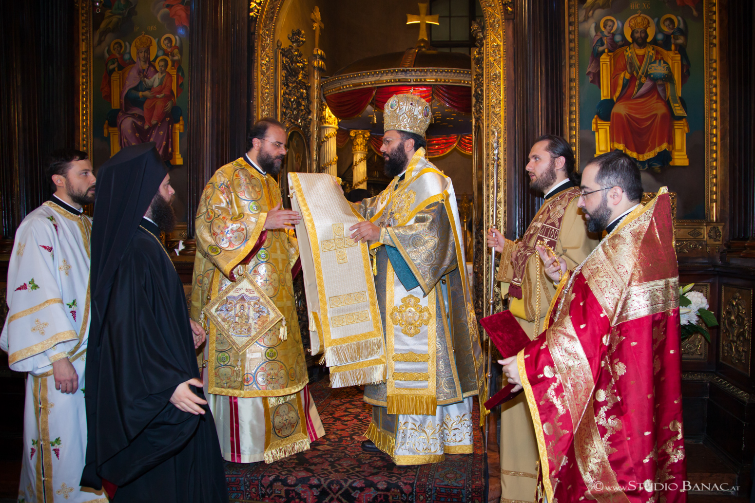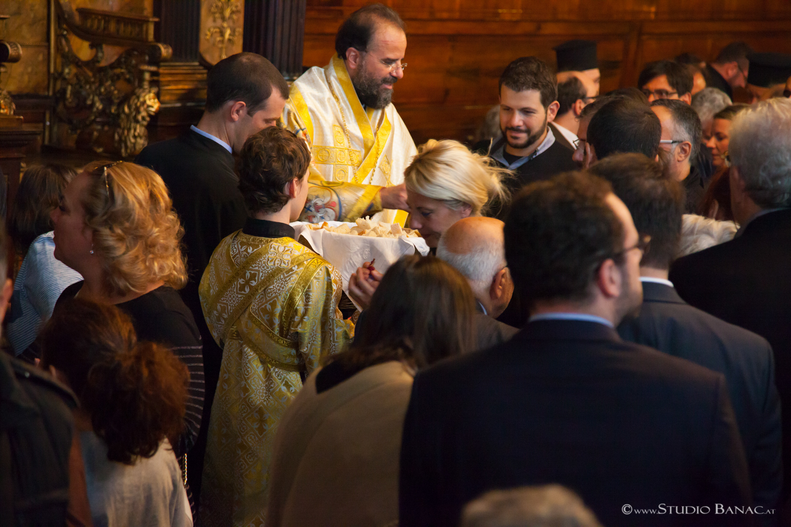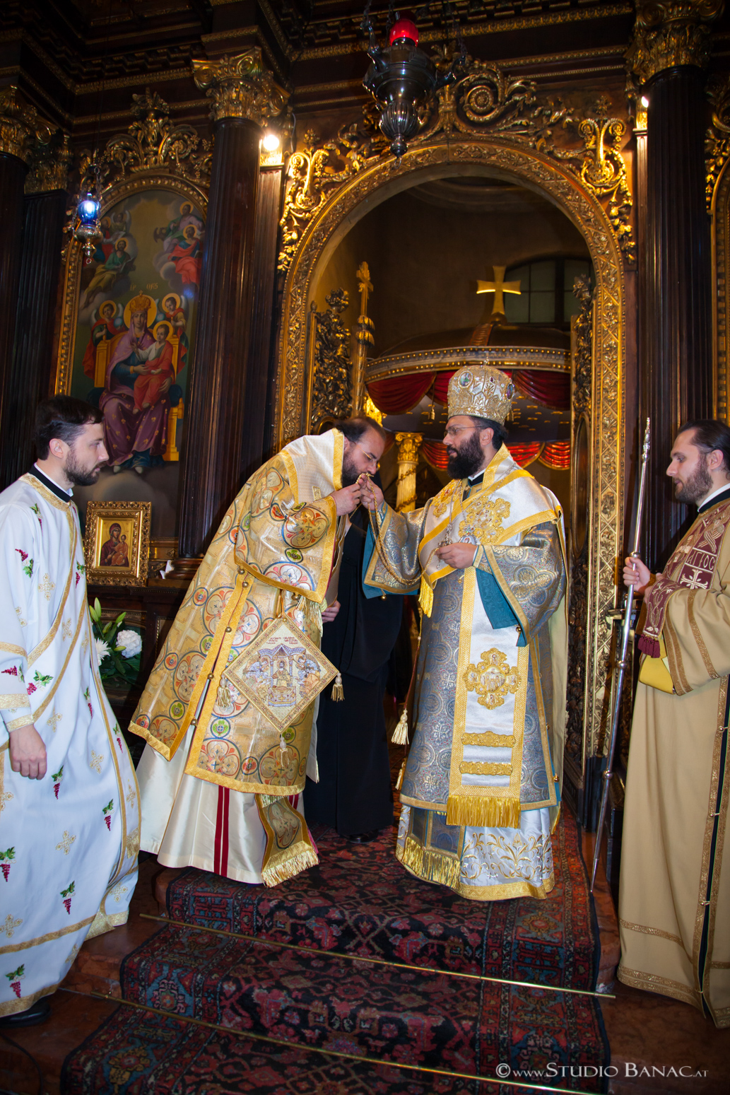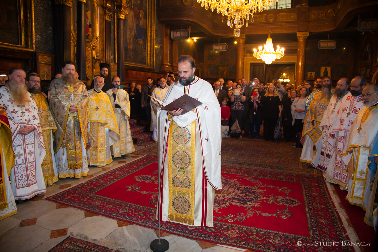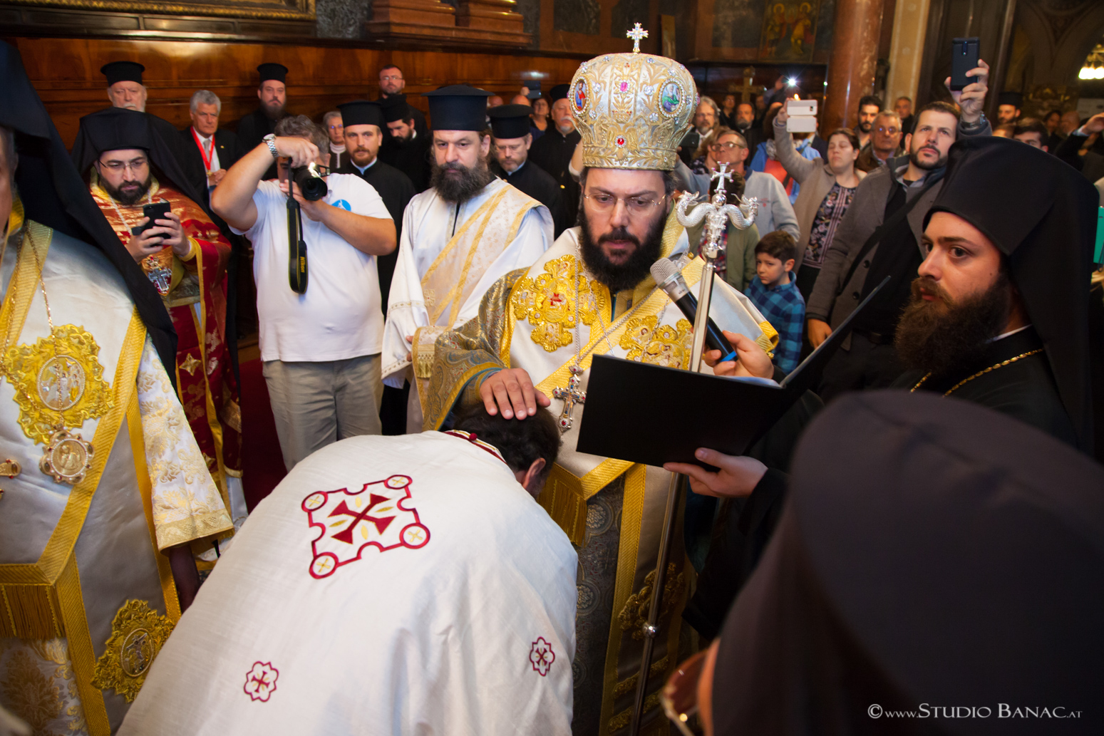 Τῆς πολυαρχιερατικῆς Θείας Λειτουργίας προεξῆρχε ὁ Σεβασμιώτατος Μητροπολίτης Αὐστρίας, Ἔξαρχος Οὑγγαρίας καί Μεσευρώπης κ. Ἀρσένιος, ἐνῶ συλλειτούργησαν ὁ Σεβ. Μητρ. Γαλλίας κ. Ἐμμανουήλ, ὁ Σεβ. Μητρ. Ρεθύμνου καί Μυλοποτάμου κ. Εὐγένιος, ὁ Σεβ. Μητρ. Ἱσπανίας καί Πορτογαλίας κ. Πολύκαρπος, ὁ Σεβ. Μητρ. Νέας Κρήνης καί Καλαμαριᾶς κ. Ἰουστῖνος, ὁ Θεοφ. Ἐπίσκοπος Σουμπέρκ κ. Ἡσαΐας, ὁ Θεοφ. Ἐπίσκοπος Λεύκης κ. Εὐμένιος, ὁ Θεοφ. Ἐπίσκοπος Χριστουπόλεως κ. Μακάριος, πλειάδα Πρεσβυτέρων καί Διακόνων ἀπό διάφορες Μητροπόλεις τοῦ Οἰκουμενικοῦ Θρόνου καί τῆς ἑλλαδικῆς Ἐκκλησίας παρουσίᾳ ἑκατοντάδων πιστῶν ἀπό διάφορες πόλεις καί χῶρες, πού προσῆλθαν νά ἀναφωνήσουν τό Ἄξιος ἐκφράζοντας τοιουτοτρόπως τήν συγκατάθεση καί στήριξή των στό πρόσωπο τοῦ νέου Ἐπισκόπου.