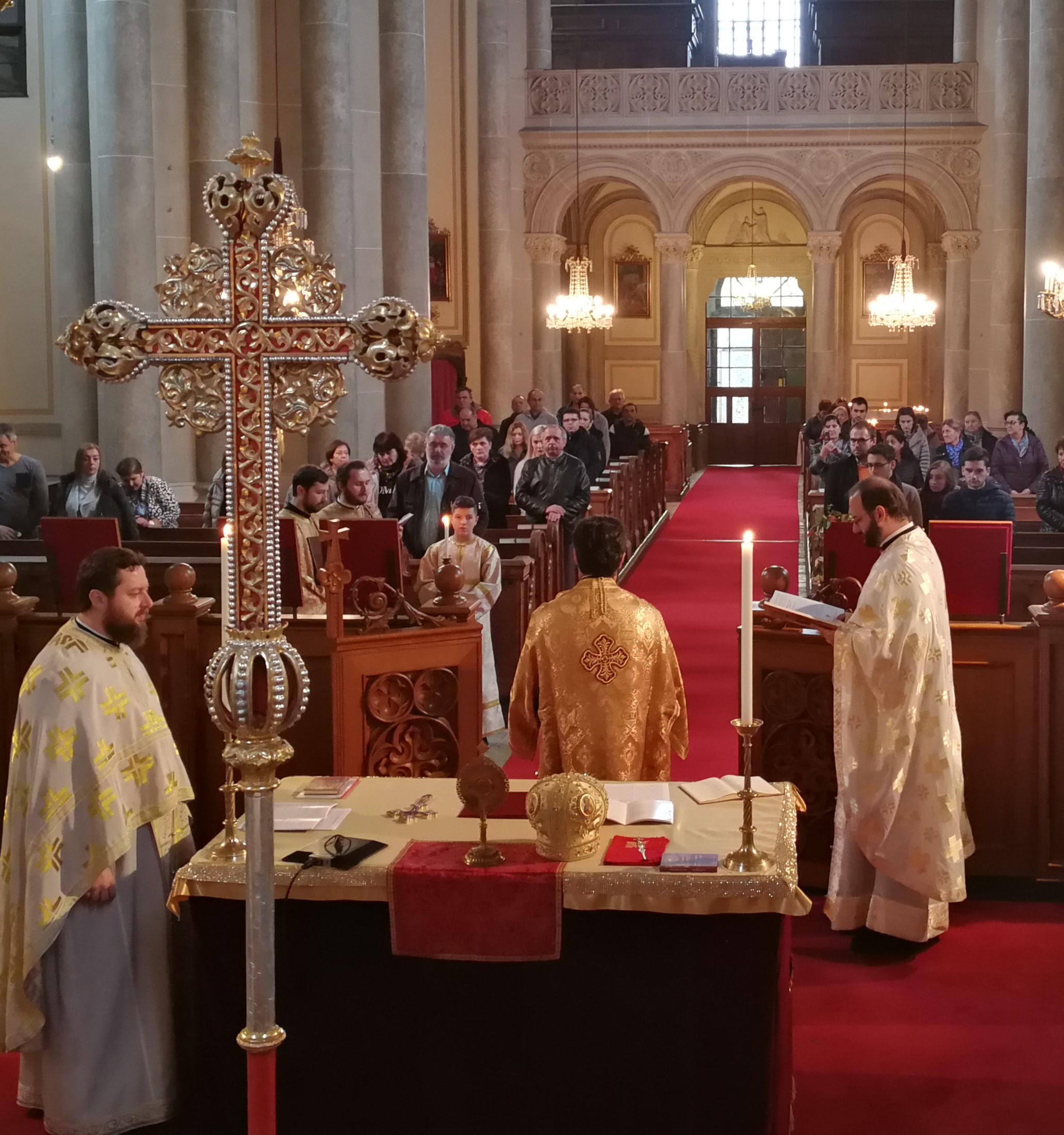 Προηγουμένως ὁ Σεβασμιώτατος Ποιμενάρχης μας προέστη τῆς Θείας Λειτουργίας πλαισιούμενος ὑπό τῶν Πρεσβυτέρων Sladjan Vasic, Ἐφημερίου τῆς Ἐνορίας, καί Ἀθανασίου Buk, τοῦ Ἱεροδιακόνου Μαξίμου Rudko παρουσίᾳ πλήθους πιστῶν. Στό κήρυγμά του ὁ Σεβασμιώτατος Μητροπολίτης Αὐστρίας καί Ἔξαρχος Οὑγγαρίας κ. Ἀρσένιος ἀναφερθείς στήν περικοπή τοῦ πλουσίου νέου ἀπό τό κατά Λουκᾶν ἅγιο εὐαγγέλιο (18, 18-27) τόνισε, ὅτι δέν μποροῦμε νά ἐκλαμβάνουμε τόν χριστιανισμό ὡς ἕναν τρόπο ζωῆς, ὁ ὁποῖος βασίζεται σέ συγκεκριμένους κανόνες καί ἐξαντλεῖται μέ τήν αὐστηρή τήρηση τῶν κανόνων αὐτῶν. Τό σημερινό παράδειγμα ἄλλωστε καταδεικνύει σαφέστατα, ὅτι ὁ Κύριός μας δέν ἑστιάζει μόνον στήν τήρηση κάποιων ἐντολῶν, ἀλλά ἀπαιτεῖ ἀπό ἐμᾶς νά ἀφεθοῦμε παντελῶς στά χέρια τοῦ Θεοῦ. Ὁ Χριστός μᾶς προειδοποιεῖ δηλαδή, ἐπισημαίνοντας τό ψεύτικο κλῖμα πού δημιουργεῖ ὁ πλοῦτος καί τόν κίνδυνο νά στηριχθεῖ ὁ ἄνθρωπος σέ πράγματα ἐπίγεια καθησυχάζοντας παράλληλα τήν συνείδησή του μέ τήν τήρηση ὁρισμένων ἐντολῶν τοῦ Θεοῦ. Ταυτοχρόνως ὅμως μᾶς δείχνει καί τόν δρόμο πρός τήν τελειότητα, πού ἰσοῦται μέ τήν πλήρη ἀποδέσμευση τοῦ ἀνθρώπου ἀπό τά πράγματα πού τόν κρατοῦν δεμένο στόν κόσμο τοῦτο. Τά καθ᾽ ἑαυτά ἀγαθά καί ἡ συνετή χρήση τους δέν ἀποτελοῦν ἐμπόδιο γιά τήν κατάκτηση τῆς Βασιλείας τοῦ Θεοῦ. Μόνον ὅταν δεθοῦμε μέ αὐτά, τότε γίνονται ἐμπόδιο στήν κατάκτηση τοῦ προορισμοῦ μας.