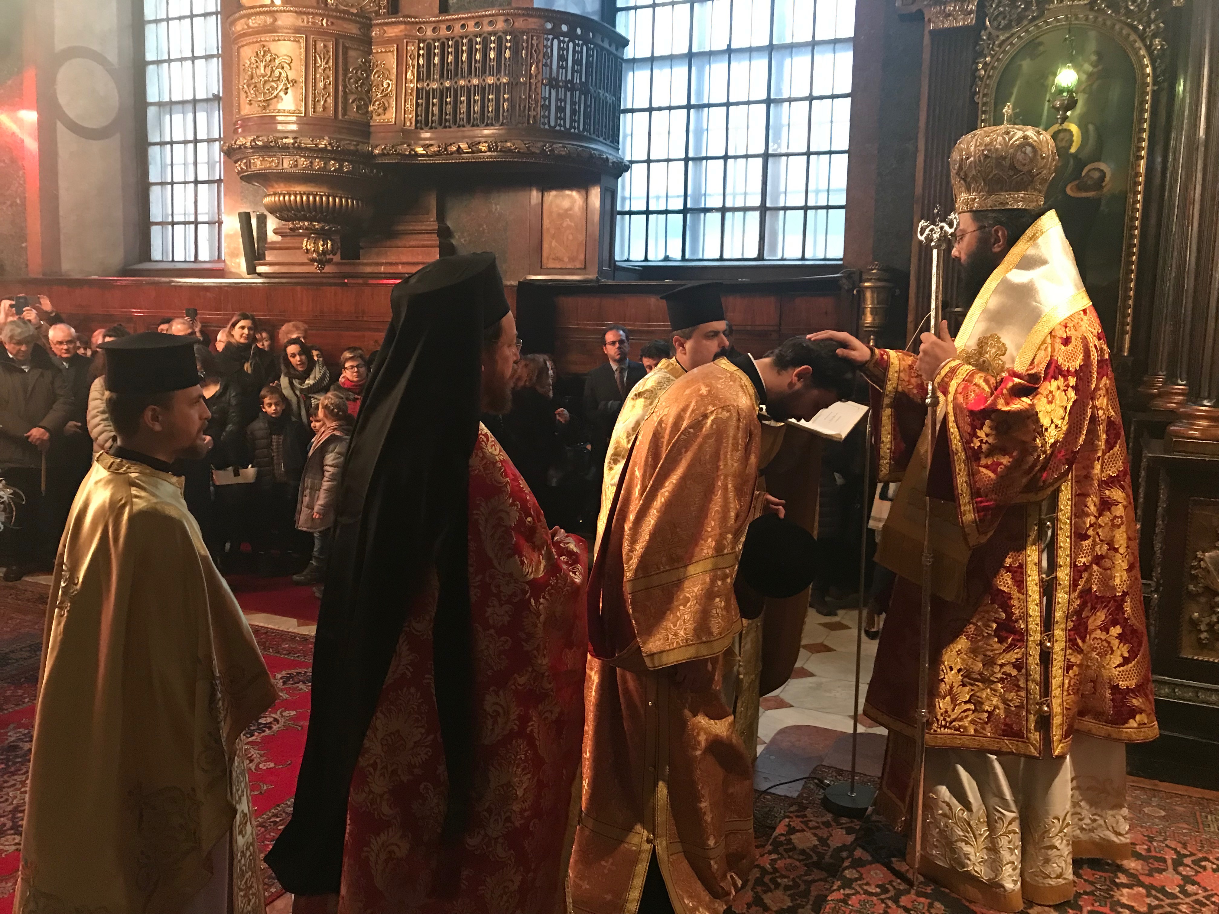 Τήν ἑπομένη, ἤτοι τήν 25ην τοῦ Δεκέμβρη, προέστη στόν Ἱ.Ν. Ἁγίου Γεωργίου Βιέννης τῆς Ἀκολουθίας τοῦ Ὄρθρου καί τῆς Θείας Λειτουργίας τοῦ Ἱεροῦ Χρυσοστόμου πλαισιούμενος ὑπό τοῦ ἐκ Σερβίας ὁρμωμένου Πανοσιολογιωτάτου Ἀρχιμανδρίτου Νικηφόρου Milovic, τοῦ Γενικοῦ Ἀρχιερατικοῦ Ἐπιτρόπου καί Πρωτοπρεσβυτέρου τοῦ Οἰκουμενικοῦ Θρόνου Ἰωάννη Νικολίτση, τοῦ Πρεσβυτέρου Γεωργίου Strugov καί τοῦ Ἱεροδιακόνου Μαξίμου Rudko. Μετά τό πέρας τῆς Θείας Λειτουργίας ὁ Σεβασμιώτατος Ποιμενάρχης μας ἐτέλεσε, μέσα σέ κλῖμα συγκίνησης, τήν Χειροθεσία τοῦ Ἱεροδιακόνου Μαξίμου Rudko σέ Ἀρχιδιάκονο, τόν εὐχαρίστησε γιά τήν μέχρι τοῦδε διακονία του καί τοῦ εὐχήθηκε πλούσια τή χάρη τοῦ Θεοῦ στήν περαιτέρω πορεία του. Τέλος, ἀκολούθησε δέηση ὑπέρ ὑγείας πάντων τῶν κατοικούντων στά ὅρια τῆς τοπικῆς μας Ἐκκλησίας, ἀλλά καί ὑπέρ εἰρήνης καί συμφιλιώσεως πάντων τῶν κατοικούντων στήν Οὑκρανία.