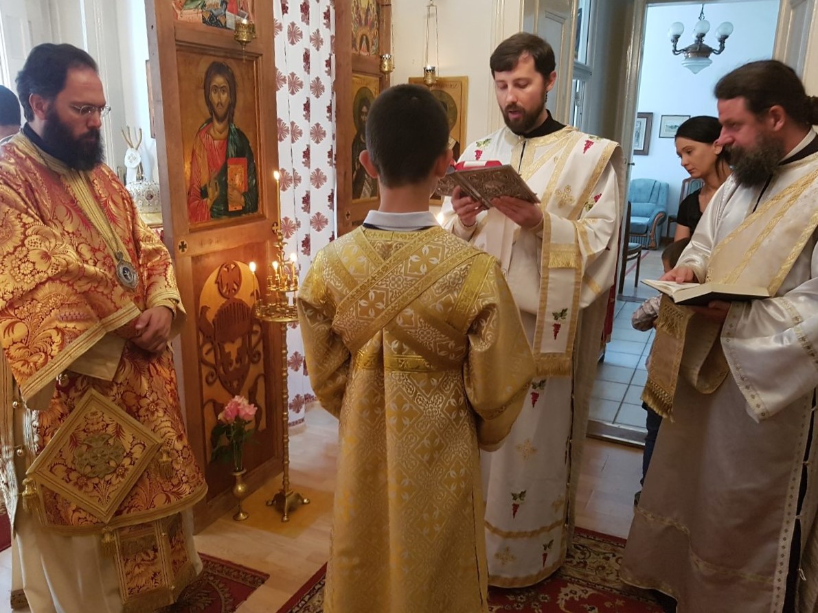 Τό Σάββατο τό ἑσπέρας χοροστάστησε στό Ἱερό Παρεκκλήσιον τῶν Ἁγίων Ἱεροθέου καί Στεφάνου στή Βουδαπέστη στήν ἀκολουθία τοῦ Ἑσπερινοῦ, ἐνῶ μετά τό πέρας αὐτῆς οἱ πιστοί, ἀλλά καί οἱ Πατέρες πού διακονοῦν τήν Ἐξαρχία μας, εἶχαν τήν εὐκαιρία νά ἐπικοινωνήσουν μέ τόν Ἐπίσκοπό τους καί νά λάβουν τήν εὐλογία του.
