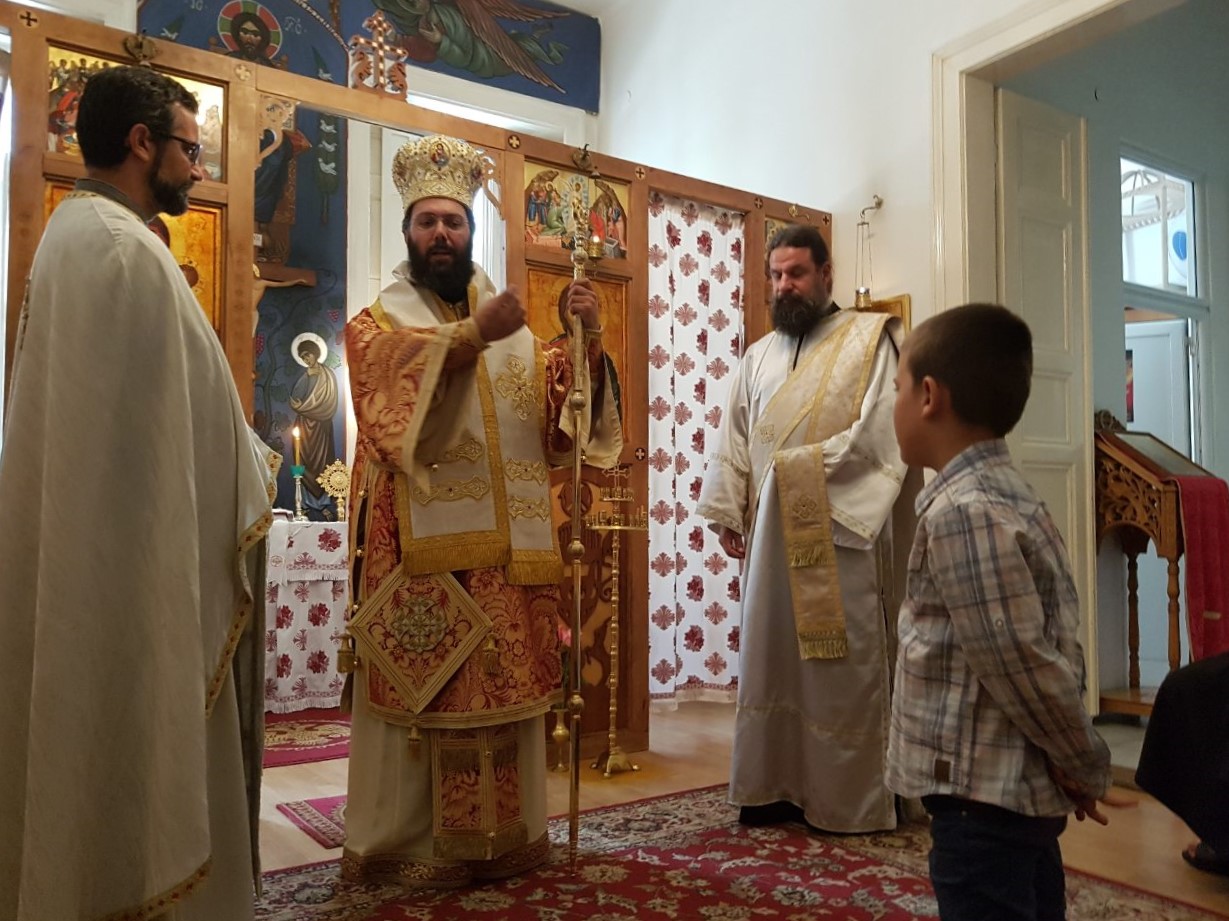 Τήν ἑπομένη, ἤτοι τήν Κυριακή, ὁ Σεβασμιώτατος Ποιμενάρχης μας προέστη τῆς Θείας Λειτουργίας, πλαισιούμενος ἀπό τόν Αἰδεσιμολ. Πρεσβύτερο Γρηγόριο Nácsinák, τόν Ἱερολ. Άρχιδιάκονο Μάξιμο Rudko καί τόν Ἱερολ. Διάκονο Ἰωσήφ Ötvös. Στό κήρυγμά του ὁ Σεβασμιώτατος Μητροπολίτης μας ἀναφερόμενος στήν εὐαγγελική περικοπή τῆς ἡμέρας, σημείωσε τήν μεγάλη σπουδαιότητα τῆς πρόσκλησης τοῦ Κυρίου μας νά Τόν ἀκολοθήσουμε. Αὐτή ἡ πρόσκληση ἐνέχει τήν ἔννοια τῆς μίμησης τοῦ Χριστοῦ μέσα ἀπό τήν προσωπική μας σχέση μαζί Του, γεγονός πού μᾶς ὁδηγεῖ στήν πραγματική ἐλευθερία, ἡ ὁποία δέν συνίσταται στήν φαινομενική ἀνεξαρτησία καί στήν ἀνθρώπινη αὐτονομία μέ σκοπό τά ἐγκόσμια κέρδη, ἀλλά στήν κατάκτηση τῆς αἰωνίου Ζωῆς. Στό πλαίσιο αὐτῆς τῆς ἐν Χριστῷ ἐλευθερίας, ὁ ἄνθρωπος καλεῖται νά ἀναλογιστεῖ καί τίς εὐθύνες του ἔναντι τῆς καθόλου δημιουργίας τοῦ Θεοῦ καί εἰδικότερα τῆς ἄλογης φύσης, ὅπως ἄλλωστε μᾶς ὑπενθυμίζει συνεχῶς κι ἀκαταπόνητα ἡ Αὐτοῦ Θειοτάτη Παναγιότητα, ὁ Οἰκουμενικός μας Πατριάρχης κ.κ. Βαρθολομαῖος. Μέσα ἀπό τήν ἀκλόνητη πίστη μας στό πρόσωπο τοῦ Κυρίου μας καί μετέχοντας τῶν ἁγίων καί ἀχράντων Μυστηρίων, δυνάμεθα καθημερινῶς νά ὁμολογοῦμε τόν Ἐσταυρωμένο καί Ἀναστημένο Χριστό καί νά πορευθοῦμε μαζί Του. Μετά τό πέρας τῆς Θείας Λειτουργίας τό καθόλου ἐκκλησίασμα εἶχε ἐκ νέου τήν εὐκαιρία νά ἐπικοινωνήσει μέ τόν Σεβασμιώτατο Ποιμενάρχη μας καί νά λάβει τήν εὐλογία του.