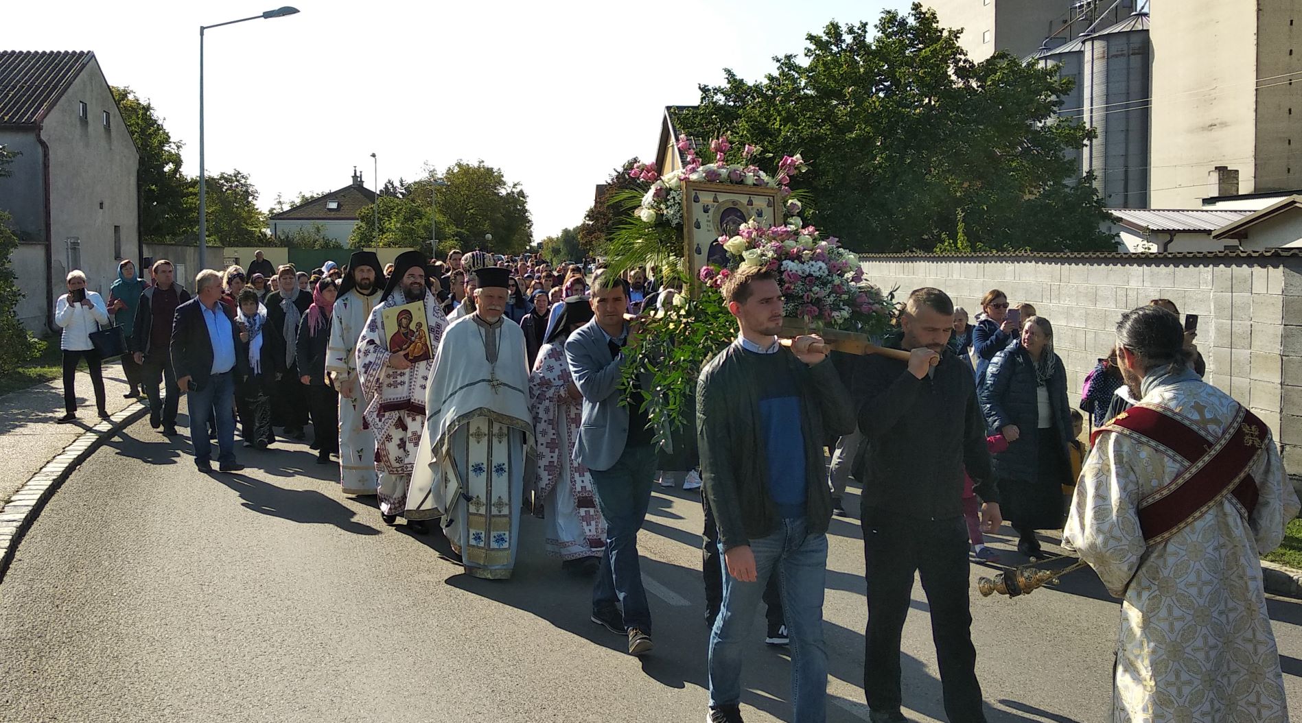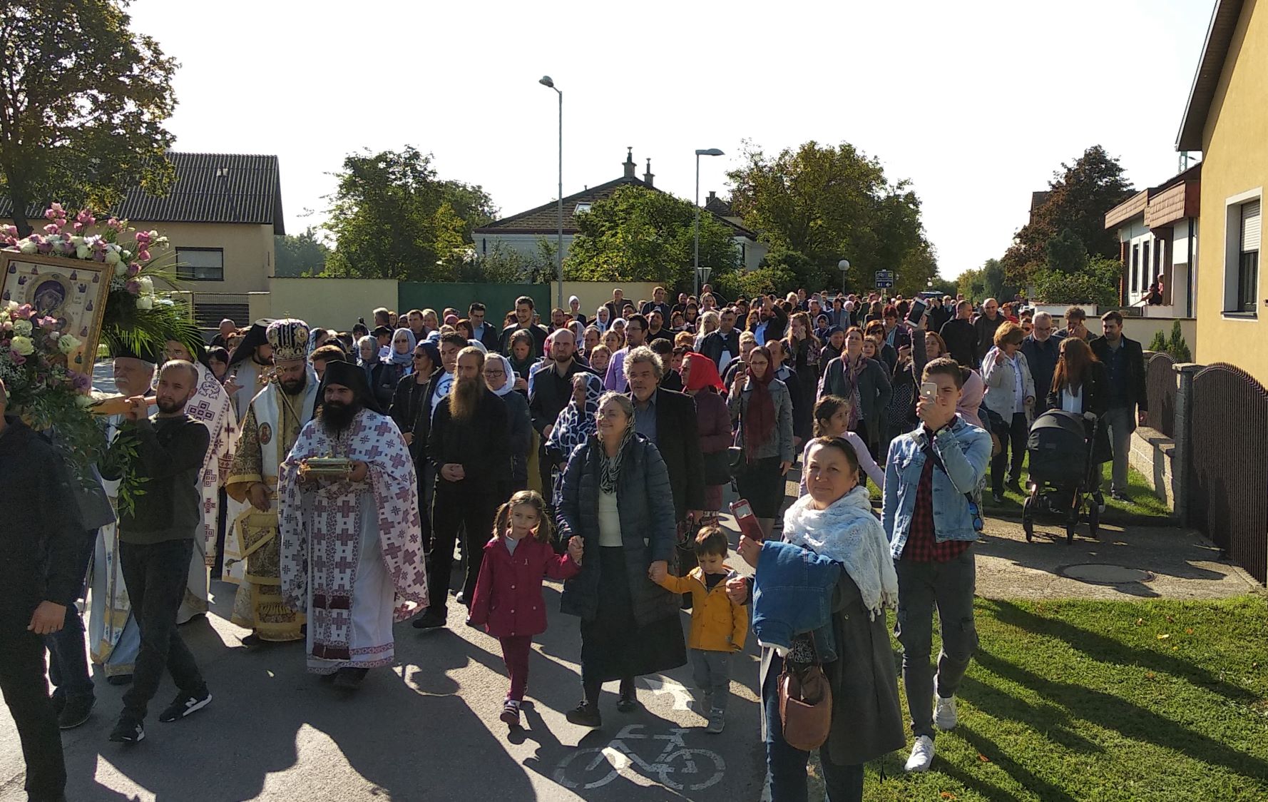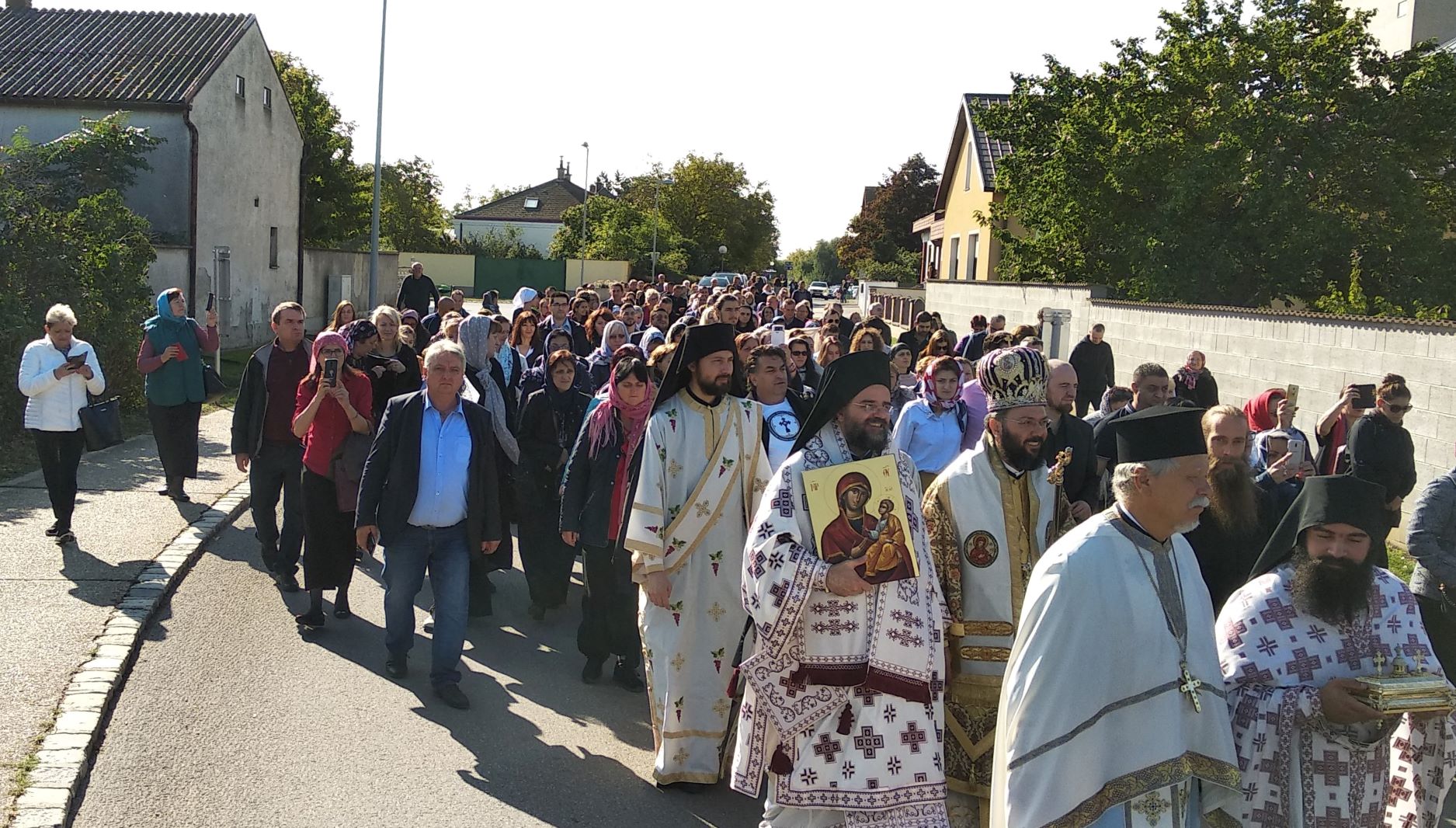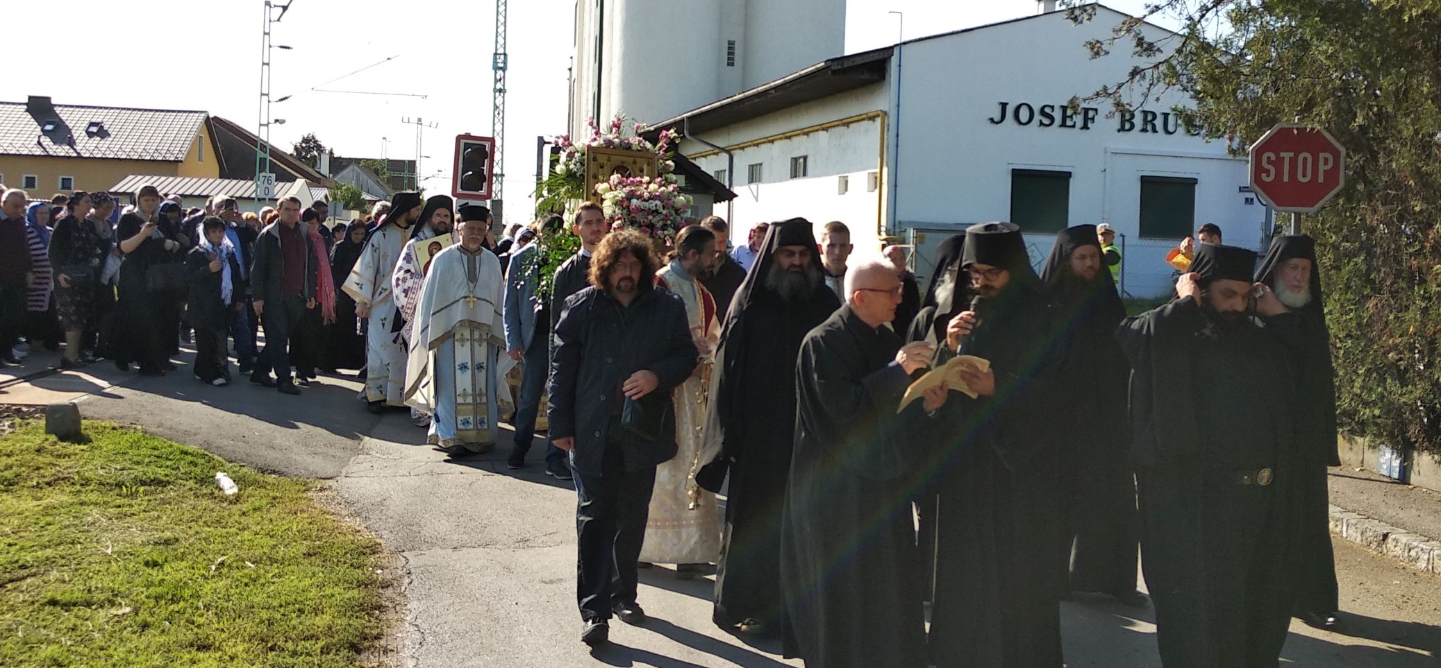 Τήν Κυριακή 29 Σεπτεμβρίου ἐ.ἔ. ὁ Σεβασμιώτατος Μητροπολίτης Αὐστρίας, Ἔξαρχος Οὑγγαρίας καί Μεσευρώπης κ. Ἀρσένιος, προέστη μέ τήν εὐκαιρία τῆς ἑορτῆς τῆς Ἁγίας Σκέπης στό Καθολικό τῆς ὁμώνυμης Ἱερᾶς Μονῆς ἐν St. Andrä τῆς Θείας Λειτουργίας, πλαισιούμενος ὑπό τοῦ Θεοφιλεστάτου Ἐπισκόπου Ἀπαμείας κ. Παϊσίου, τοῦ Πανοσολ. Ἀρχιμανδρίτου καί Καθηγουμένου τῆς Ἱερᾶς Μονῆς Παϊσίου Jung, τοῦ Αἰδεσιμολ. Πρωτοπρεσβυτέρου Ἀλεξάνδρου Lapin, τοῦ Ἱερομονάχου Ἀρσενίου καί τοῦ Ἱερολογ. Ἀρχιδιακόνου Μαξίμου Rudko παρουσίᾳ πλειάδας Μοναχῶν ἐκ Σερβίας καί Γερμανίας ὁρμωμένων, ἀλλά καί πλήθους πιστῶν.