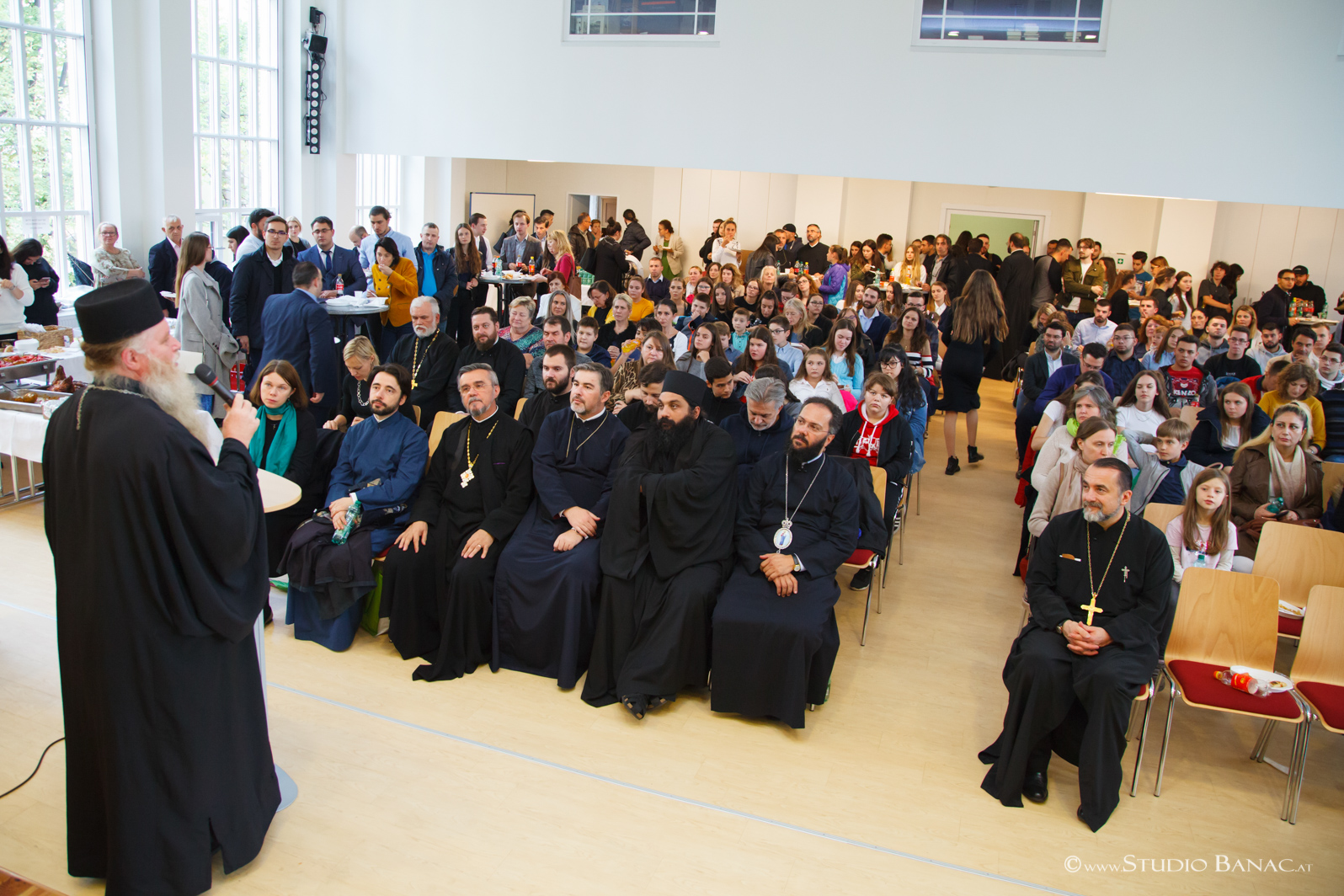 Μετά τό πέρας τῆς θείας λειτουργίας ἀκολούθησε τό καθιερωμένο πλούσιο μεσημεριανό γεῦμα, τό ὁποῖο προετοίμασαν καί προσέφεραν οἱ σερβικές Ἐνορίες τῆς Βιέννης. Στή συνέχεια, ὁ Καθηγούμενος τῆς ἐν St. Andrä Ἱ.Μ. τῆς Ἁγίας Σκέπης, ὁ Πανοσιολογιώτατος Ἀρχιμανδρίτης Παΐσιος Jung, ὡμίλησε μέ θέμα τήν προσωπική Προσευχή ὡς τρόπο ἐπικοινωνίας μας μέ τόν Θεό, σημειώνοντας, ἐν πρώτοις, ὅτι ἡ Προσευχή ἀποτελεῖ ἔμφυτο στοιχεῖο κάθε ἀνθρώπου. Ἀπό ἀρχαιοτάτων χρόνων οἱ ἄνθρωποι προσεύχονταν καί προσέφεραν θυσίες γιά νά πλησιάσουν τό θεῖο, τό ὁποῖο ἀρχικῶς δέν μποροῦσαν οὔτε νά περιγράψουν οὔτε νά κατανοήσουν. Στή σημερινή ἐποχή δυστυχῶς ἡ Προσευχή, αὐτή ἡ ἀνάγκη δηλαδή τοῦ ἀνθρώπου νά ἀπευθυνθεῖ στόν Θεό ἔχει ἀτονήσει καί παραθεωρηθεῖ. Μάλιστα πολλάκις ὁ κόσμος ἐκφράζει τήν δυσκολία του νά προσευχηθεῖ ἤ ἀκόμη καί νά συγκεντρωθεῖ χαρακτηρίζοντας τήν καθόλου διαδικασία τῆς ἐπικοινωνίας του μέ τόν Θεό κουραστική ἤ καί περιττή. Κατά δεύτερον, ὁ Πανοσιολογιώτατος ἀναφέρθηκε στήν ἀποτελεσματικότητα τῆς Προσευχῆς. Σχετικῶς μέ αὐτήν παρέπεμψε στόν Ὅσιο Παΐσιο τόν Ἁγιορείτη, ὁ ὁποῖος τονίζει, ὅτι θά πρέπει νά προσευχόμεθα μέ πόνο καρδιᾶς, μέ ἐπιμονή καί ὑπομονή. Θά πρέπει νά ὑπάρχει πόνος γιά τό θέμα γιά τό ὁποῖο προσευχόμεθα∙ ἀκόμη κι ἕνας ἀναστεναγμός κάνει τήν Προσευχή καρδιακή καί ἰσοδυναμεῖ μέ ὧρες προσευχῆς. Ἡ πραγματική Προσευχή λοιπόν πρέπει νά ξεκινάει ἀπό ἕναν πόνο γιά νά ἔχει ἀποτέλεσμα. Τέλος, ὁ Ἅγιος Καθηγούμενος τόνισε καί τό στοιχεῖο τῆς διάρκειας τῆς Προσευχῆς λέγοντας, ὅτι πρέπει νά προσευχόμεθα ἀδιαλείπτως, ἡμέρα καί νύκτα, ἕως τό τέλος τῆς ζωῆς μας. Ἡ προσευχή δέν πρέπει νά καταντήσει κάτι πού ἐκτελοῦμε ἀπό καιροῦ σέ καιρό, ἀλλά πρέπει νά εἶναι μέρος τοῦ εἶναι μας. Νά μήν εἴμαστε ἁπλῶς κάποιος πού λέει προσευχές, ἀλλά νά γίνουμε οἱ ἴδιοι Προσευχή. Μετά τό πέρας τῆς ὁμιλίας, οἱ νέες καί οἱ νέοι μας χωρίστηκαν σέ ὁμάδες γιά νά συζητήσουν λεπτομερῶς καί ἐνδελεχῶς τό ζήτημα τῆς προσωπικῆς Προσευχῆς μέ τήν παρουσία τῶν Καθηγητῶν Θεολόγων καί τῶν Κληρικῶν τῆς Ἱερᾶς μας Μητροπόλεως.