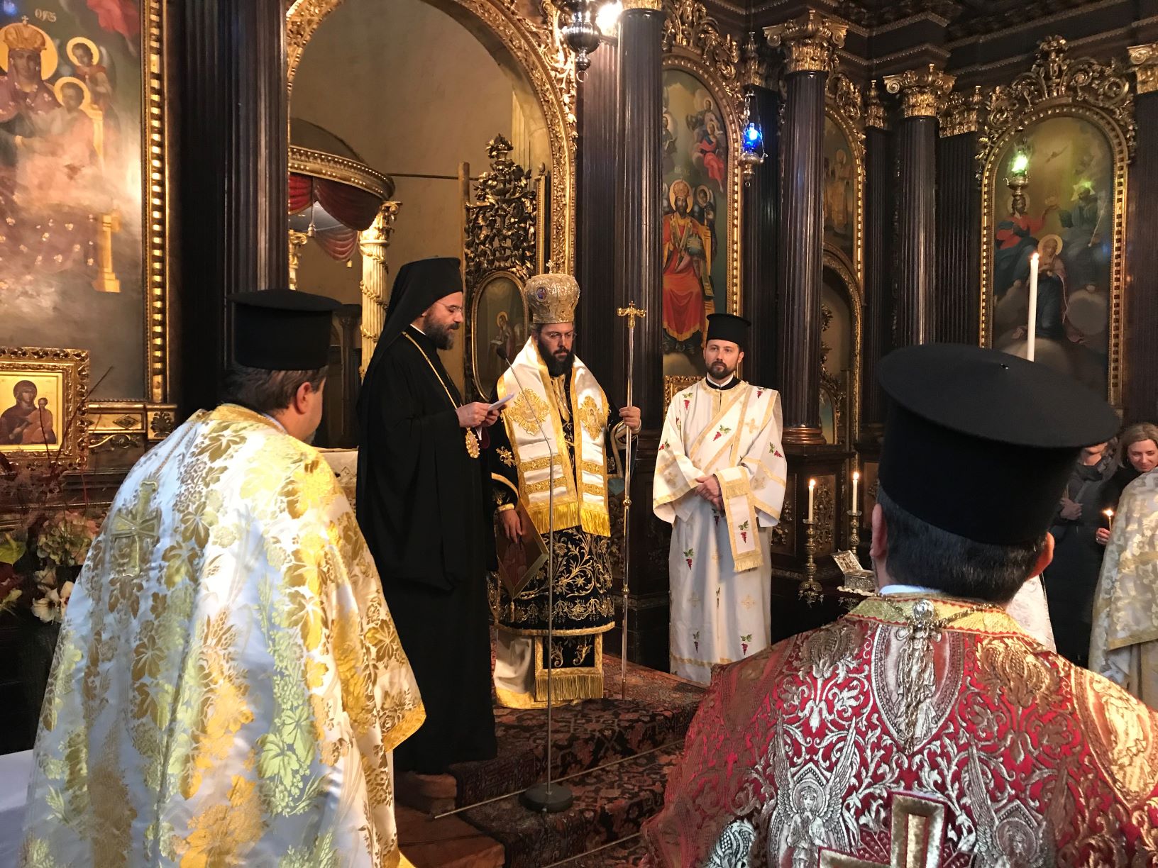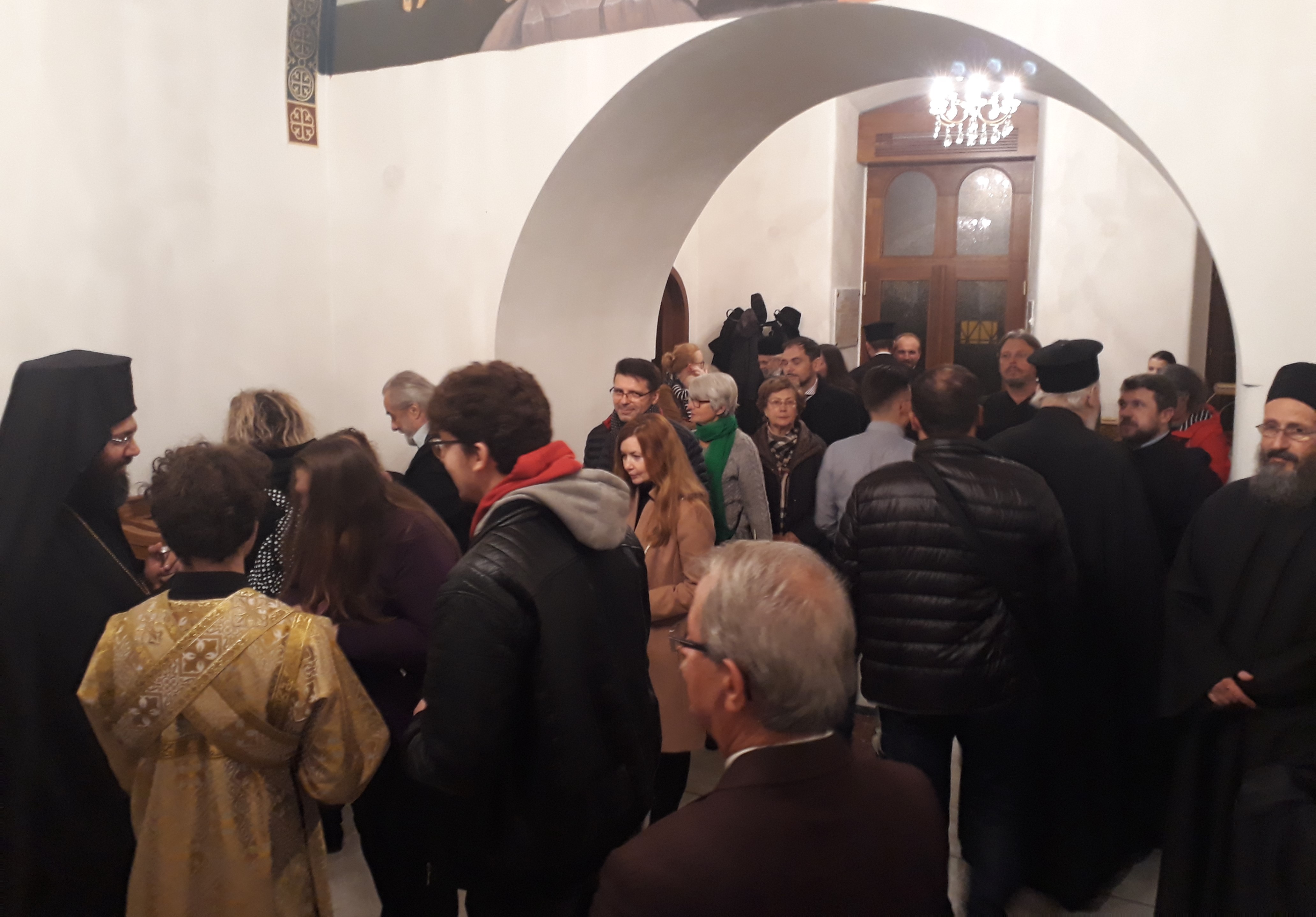 Τήν παραμονή τῆς ἑορτῆς, ἤτοι τό Σάββατο 9 Νοεμβρίου, ὁ Σεβασμιώτατος Ποιμενάρχης μας χοροστάστησε στό Ἱ.Π. τοῦ Ἁγίου Ἰωάννου τοῦ Χρυσοστόμου στόν Μέγα Ἑσπερινό συμπροσευχομένων τοῦ Σεβασμιωτάτου Μητροπολίτου Δράμας κ. Παύλου καί τοῦ Θεοφιλεστάτου Ἐπισκόπου Ἀπαμείας κ. Παϊσίου, καί πλειάδος Πρεσβυτέρων καί Διακόνων ἀπό τήν καθόλου Ἱερά μας Μητρόπολη. Τήν ἑπομένη, ὁ Σεβασμιώτατος Ποιμενάρχης μας προέστη τῆς πολυαρχιερατικοῦ συλλείτουργου μετά τῶν προαναφερθέντων Ἀρχιερέων, ἐνῶ συμπροσευχόμενος παρέστη κι ὁ Σεβασμιώτατος Μητροπολίτης Γαλλίας κ. Ἐμμανουήλ. Στή Θεία Λειτουργία μετεῖχαν ἐπίσης, οἱ Πανοσιολογιώτατοι Ἀρχιμανδρῖτες Χρυσόστομος Ἀθανασόπουλος καί Ἠλίας Παπαδόπουλος, οἱ Πρωτοπρεσβύτεροι Ἰωάννης Νικολίτσης, Ἀλέξανδρος Lapin καί Ἐμμανουήλ Δῖρλας, ὁ Πρεσβύτερος Nemanja Komnenov, οἱ Ἱερομόναχοι Ἀθανάσιος Buk καί Βαρθολομαῖος Ungureanu, καί ὁ Ἀρχιδιάκονος Μάξιμος Rudko, ἐνῶ συμπροσευχόμενοι παρέστησαν οἱ Πρωτοπρεσβύτεροι Νικόλαος Rappert καί Ἀθανάσιος Παπαθανασίου μέ τήν παρουσία ἐκπροσώπων τῶν διπλωματικῶν ἀρχῶν Ἑλλάδος καί Κύπρου στή Βιέννη, καί ἑκατοντάδων πιστῶν πού προσῆλθαν στήν εὐχαριστιακή καί λατρευτική σύναξη προκειμένου νά εὐχηθοῦν στόν ἑορτάζοντα Ποιμενάρχη μας.