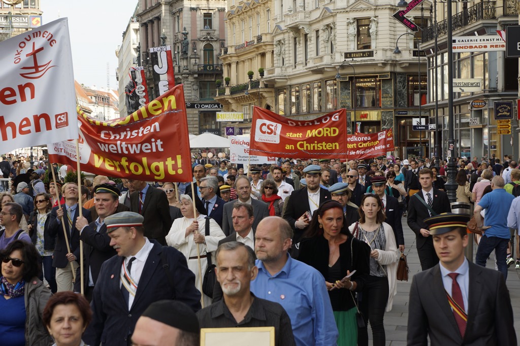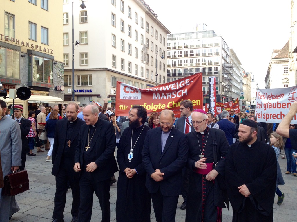 Μέ τήν εὐκαιρία τῆς Μεγάλης Νύχτας τῶν Ἐκκλησιῶν τήν Παρασκευή 29 Μαΐου πραγματοποιήθηκε στή Βιέννη εἰρηνική πορεία γιά τούς διωκώμενους Χριστιανούς ἀνά τόν κόσμο. Μεγάλος ἀριθμός ἀνθρώπων κινητοποιήθηκε ἀνεξάρτητα ἀπό καταγωγή ἤ θρησκευτικές πεποιθήσεις καί συμμετεῖχε στήν εἰρηνική διαδήλωση, ἐκφράζοντας ἔτσι τήν ὑποστήριξή του καί τήν ἀλληλεγγύη του γιά ἐκείνους τούς χριστιανούς, πού ὑπόκειται διακρίσεις, διώκονται, ἀπωθοῦνται ἤ καί θανατώνονται. Ὁ Σεβ. Μητροπολίτης Αὐστρίας κ. Ἀρσένιος ἔδωσε τή δική του μαρτυρία στήν ἀρχή τῆς διαδήλωσης ἀπό τόν Καθεδρικό Ναό τοῦ Ἁγίου Στεφάνου στό κέντρο τῆς αὐστριακῆς πρωτεύουσας καί ἐξέφρασε τή θλίψη του γιά ὅσα ὑπόκειται χριστιανοί σέ ὅλο τόν κόσμο: «Εἶναι σημαντικό νά δείξουμε τήν ἀλληλεγγύη μας στούς ἀδελφούς μας, πού διώκονται. Δέν θά πρέπει ὄμως νά περιορισθοῦμε σέ αὐτή τήν διαδήλωση, ἀλλά θά πρέπει νά κάνουμε τή βοήθειά μας πράξη. Δέν μποροῦμε νά παραθεωροῦμε τό μαρτύριο καί τό θάνατο τόσων ἀνθρώπων», ἀνέφερε ἐπιτατικά ὁ Σεβασμιώτατος.