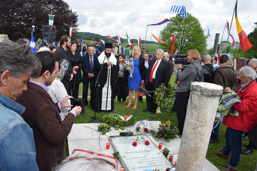 Μετά τό πέρας τῆς ἐκδηλώσεως ὁ Σεβασμιώτατος τέλεσε τρισάγιο στό μνημεῖο τῶν πεσόντων Ἑλλήνων στό στρατόπεδο συγκεντρώσεως. Στήν τελετή ἔλαβαν μέρος ἡ Πρόεδρος τοῦ Ἑλληνικοῦ Κοινοβουλίου κ. Ζωή Κωνσταντοπούλου, ἡ Πρέσβης τῆς Ἑλλᾶδος κ. Χρυσούλα Ἀλιφέρη, ὀ Πρέσβης τῆς Κύπρου κ. Μάριος Ἱερωνυμίδης, καθώς καί πολλοί Ἕλληνες, πού τίμησαν τούς πεσόντες νεκρούς.