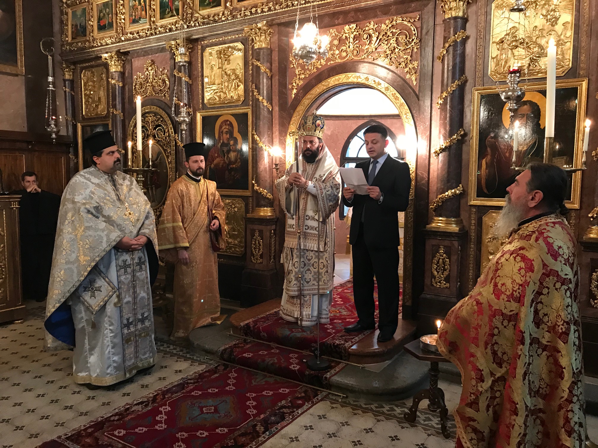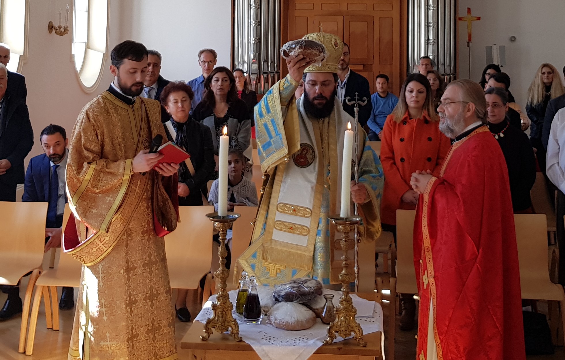 Κι ἐφέτος ἑορτάστηκαν μέ λαμπρότητα στή Βιέννη οἱ Ἐθνικές Ἐπέτειοι τῆς Ἑλλάδος καί τῆς Αὐστρίας. Τήν Κυριακή 28 Ὀκτωβρίου 2018 ὁ ὁ Σεβασμιώτατος Μητροπολίτης Αὐστρίας, Ἔξαρχος Οὑγγαρίας καί Μεσευρώπης κ. Ἀρσένιος προεξῆρχε στόν Ἱ.Μ.Ν. τῆς Ἁγίας Τριάδος τῆς Θείας Λειτουργίας πλαισιούμενος ὑπό τοῦ Πρωτοπρεσβυτέρου τοῦ Οἰκουμενικοῦ Θρόνου καί Γενικοῦ Ἀρχιερατικοῦ Ἐπιτρόπου Ἰωάννη Νικολίτση καί τοῦ Ἱεροδιακόνου Μαξίμου Rudko παρουσίᾳ τοῦ Συμβούλου Α΄ τῆς Πρεσβείας τῆς Ἑλλάδος στή Βιέννη κ. Νικολάου Σαπουντζῆ, τῆς Πρέσβεως τῆς Κύπρου στή Βιέννη κας Ἕλενας Ράφτη, τοῦ Μονίμου Ἀντιπροσώπου τῆς Ἑλλάδος στόν ΟΑΣΕ κ. Ἄλέξη Ζάννου καί πλήθους πιστῶν.