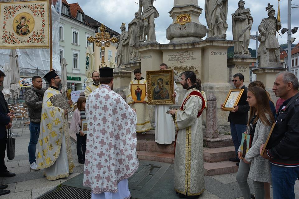 Τήν Κυριακή 24 Ἰουνίου 2018 ἡ Ἐνορία στό Leoben ἑόρτασε μέ λαμπρότητα τήν Σύναξη τῆς Ὑπεραγίας Θεοτόκου τῆς Ὁδηγήτριας (20 Ἰουνίου), καθώς εἶναι ἀφιερωμένη σ᾽ αὐτήν. Τῆς Θείας Λειτουργίας προέστη ὁ Πρεσβύτερος καί Ἐφημέριος τῆς Ἐνορίας Sladjan Vasić πλαισιούμενος ὑπό τοῦ Πρεσβυτέρου Tencho Veselinov παρουσίᾳ τῆς Κοινοτικῆς Συμβούλου κας Margit Keshmiri πού ἐκπροσώπησε τίς τοπικές Ἀρχές καί πλήθους πιστῶν.