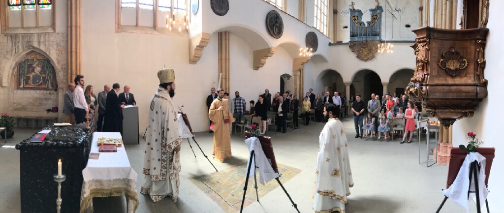 Τήν Κυριακή 24 Ἰουνίου 2018 ὁ Σεβασμιώτατος Μητροπολίτης Αὐστρίας, Ἔξαρχος Οὑγγαρίας καί Μεσευρώπης κ. Ἀρσένιος προέστη τῆς Ἀρχιερατικῆς Θείας Λειτουργίας στόν Ἱ.Μ.Ν. τῆς Ἀγίας Τριάδος πλαισιούμενος ὑπό τοῦ Ἀρχιμανδρίτου καί Καθηγουμένου τῆς Ἱερᾶς Μονῆς τῆς Ἁγίας Σκέπης Παϊσίου Jung, τοῦ Ἀρχιερατικοῦ Ἐπιτρόπου καί Πρωτοπρεσβυτέρου τοῦ Οἰκουμενικοῦ Θρόνου Ἰωάννου Νικολίτση, τοῦ Πρωτοπρεσβυτέρου Μιχαήλ Buk ἀπό τήν Γερμανία, τοῦ Πρωτοπρεσβυτέρου Ἀλεξάνδρου Lapin, τοῦ Πρεσβυτέρου Yurij Strugov, τοῦ Πρεσβυτέρου Λαζάρου Christensen ἀπό τήν Δανία, τοῦ Ἀρχιδιακόνου Ἀθανασίου Buk καί τοῦ Διακόνου Μαξίμου Rudko.