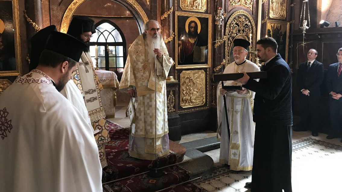 Τήν Παρασκευή 21 Άπριλίου ἐ.ἔ. ὁ Σεβασμιώτατος Μητροπολίτης Αὐστρίας, Ἔξαρχος Οὑγγαρίας καί Μεσευρώπης κ. Ἀρσένιος προεξῆρχε στόν Ἱερό Ναό Κωνσταντίνου καί Ἑλένης στήν κώμη Ν. Μπελογιάννης τῆς Θείας Λειτουργίας, ὅπου πλαισιούμενος ὑπό τοῦ Πρωτοσυγκέλλου τῆς Ἱερᾶς μας Μητροπόλεως, τοῦ Πανοσιολογιωτάτου Ἀρχιμανδρίτου Πασίου Λαρεντζάκη καί ἄλλων Πατέρων πού διακονοῦν τήν Ἐξαρχία μας, ἐτέλεσε τήν εἰς Διάκονον χειροτονία τοῦ Δρ. Ἰωσήφ Ötvös, τόν ὁποῖο μετά τό πέρας τῆς Ἄκολουθίας τοῦ Ὄρθου εἶχε προηγουμένως χειροθετήσει εἰς Ἀναγνώστην καί Ὑποδιάκονον.