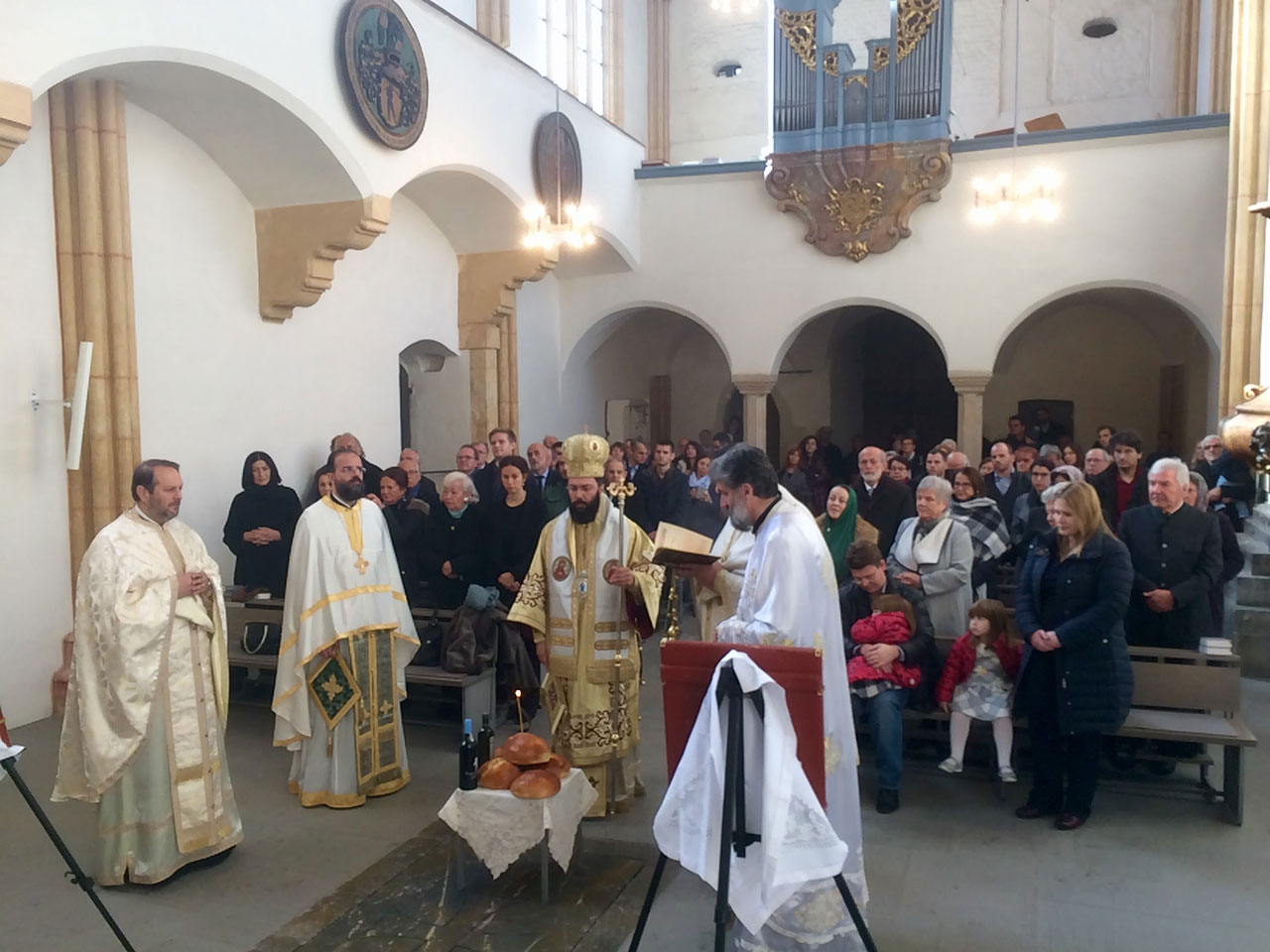 Μέ τήν εὐκαιρία τῆς ἑορτῆς τῶν Ἁγίων ἐνδόξων Ἀναργύρων Κοσμᾶ καί Δαμιανοῦ, ὁ Σεβασμιώτατος Μητροπολίτης Αὐστρίας καί Ἔξαρχος Οὑγγαρίας κ. Ἀρσένιος, ἐπισκέφθηκε τήν ἑλληνόφωνη ἐνορία στό Graz καί ἑόρτασε μαζί μέ τούς πιστούς τήν μνήμη τῶν Ἁγίων ἐνδόξων Ἀναργύρων, Προστατῶν τῆς ἐνορίας. Στήν Ἀρχιερατική Θεία Λειτουργία πῆραν μέρος ὁ Ἀρχιμανδρίτης Παΐσιος Λαρεντζάκης, ὁ Ἀρχιερατικὸς Ἐπίτροπος καὶ Πρωτοπρεσβύτερος τοῦ Οἰκουμενικοῦ Θρόνου π. Ἰωάννης Νικολίτσης, ὁ ρουμάνος Πρεσβύτερος Nikolaus Gilla κι ὁ σέρβος Πρεσβύτερος Miomir Sando.
