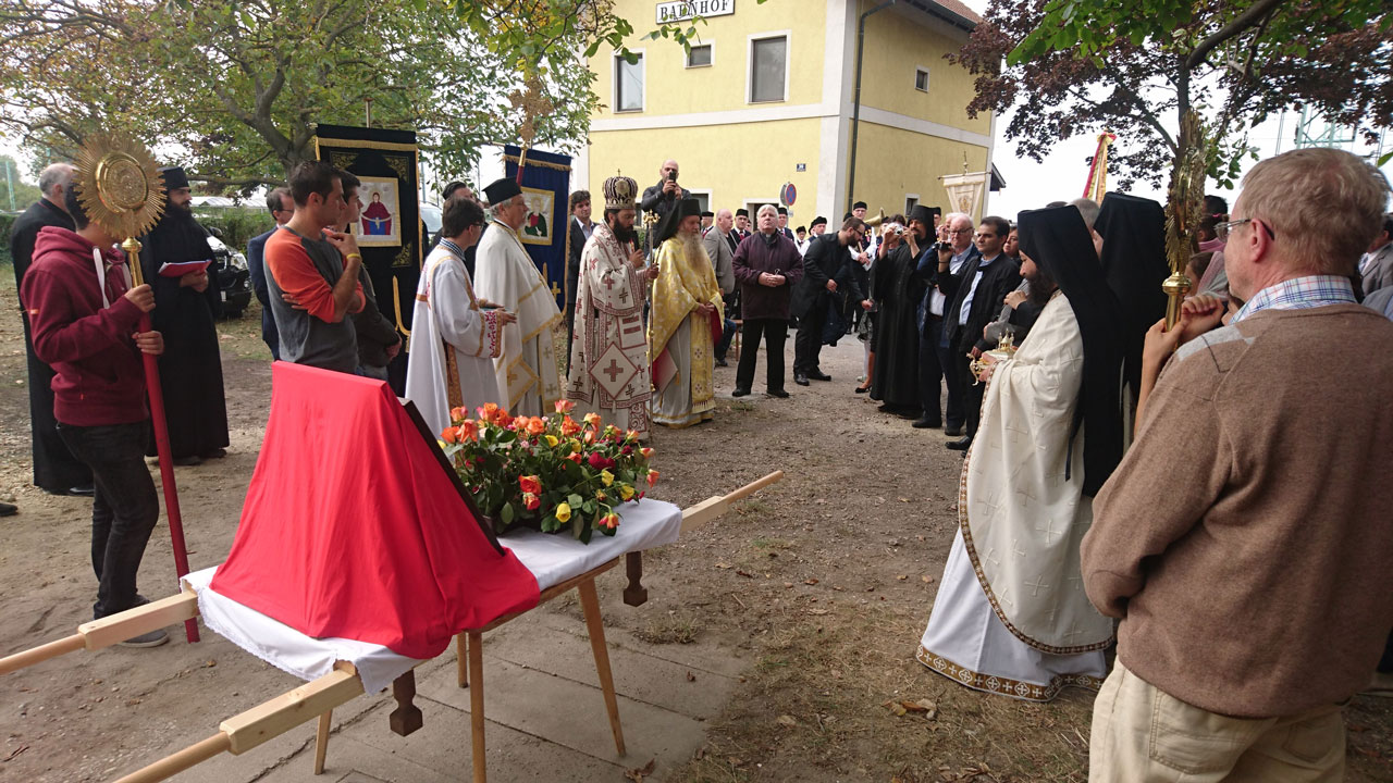 Τὴν Κυριακὴ 2 Ὀκτωβρίου ὁ Σεβ. Μητροπολίτης Αὐστρίας κ. Ἀρσένιος ἐπισκέφθηκε τὴν Ἱερὰ Μονὴ Ἁγίας Σκέπης στὸ Sankt Andrä am Zicksee, ὥστε μαζὶ μὲ τοὺς μοναχοὺς καὶ μεγάλο ἀριθμὸ προσκυνητῶν ποὺ προσῆλθαν νὰ ἑορτάσει γιὰ πρώτη φορὰ τὴν Ἱερὰ Πανήγυρη τῆς Μονῆς. Μὲ τὸν Σεβασμιώτατο συλλειτούργησαν ὁ ἡγούμενος Ἀρχιμανδρίτης Παΐσιος Jung, ὁ Ἀρχιμανδρίτης Παΐσιος Λαρεντζάκης, ὁ Πρωτ. Ἀλέξανδρος Λάπιν, οἱ Ἱερομόναχοι Ἰάκωβος ἀπὸ τὴν Ἑλλάδα καὶ Καλλίνικος ἀπὸ τὴ Γερμανία καὶ ὁ Ἱεροδιάκονος Ἀρσένιος. Τὴν Πανήγυρη τῆς Μονῆς τίμησε μὲ τὴν παρουσία του ὁ Δήμαρχος τοῦ Sankt Andrä, κ. Erich Goldenitsch, καθὼς καὶ ἄλλα μέλη τοῦ δημοτικοῦ συμβουλίου, κάτοικοι τῆς περιοχῆς, ποὺ θέλησαν νὰ εὐχηθοῦν καὶ νὰ συνεορτάσουν μαζὶ μὲ τοὺς μοναχούς.