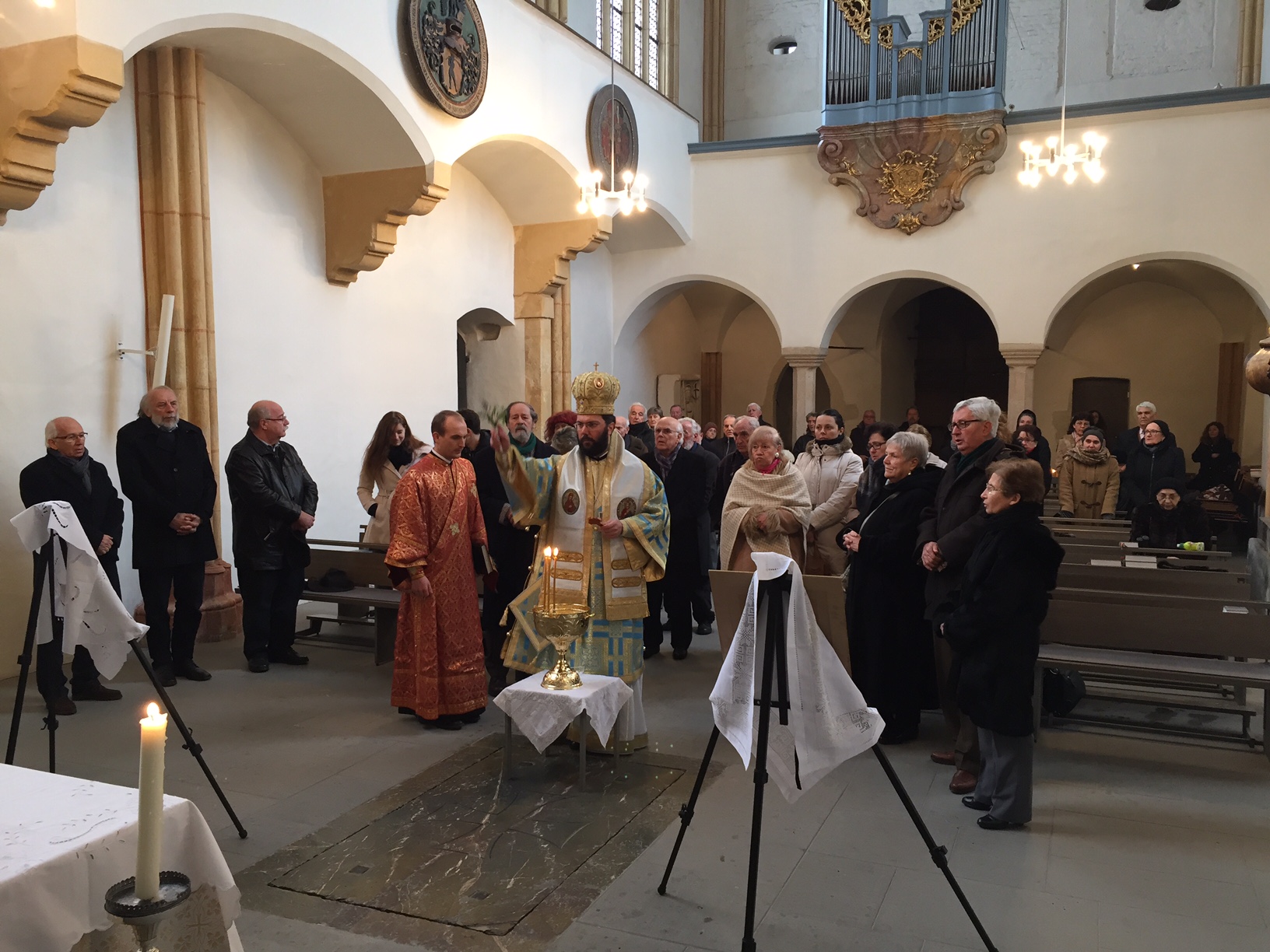Τὴν Κυριακὴ 3 Ἰανουαρίου ὁ Σεβασμιώτατος τέλεσε τὴ θεία Λειτουργία στὴν ἑνορία τῶν Ἁγίων Ἀναργύρων στὸ Graz μὲ τὸν Διάκονο π. Γεώργιο. Στὸ τέλος τῆς ἀκολουθίας τελέσθηκε ὁ Ἁγιασμὸς μὲ ἀφορμὴ τὰ Ἅγια Θεοφάνια καὶ ἡ κοπὴ τῆς Βασιλόπιτας γιὰ τὸ νέο ἔτος 2016, ποὺ μοιράστηκε στὸ ἐκκλησίασμα.