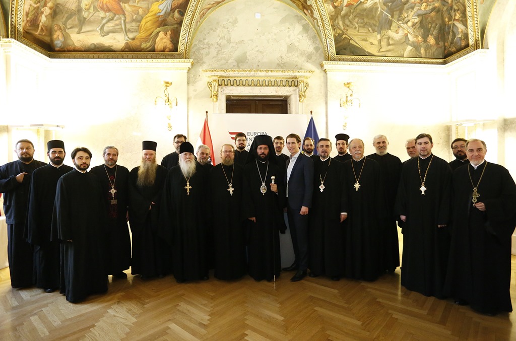 Ὁ Ὑπουργός Εὐρωπαϊκῶν Θεμάτων, Ἐξωτερικῶν καί Ἐνσωμάτωσης κ. Sebastian Kurz ὑποδέχθηκε στίς 23 Ἀπριλίου 2015 τόν Σεβ. Μητροπολίτη Αὐστρίας κ. Ἀρσένιο, τόν κλῆρο στήν Αὐστρία καί ἐκπροσώπους τῶν Ἐκκλησιαστικῶν Κοινοτήτων τῆς Βιέννη στό Ὑπουργεῖο Ἐξωτερικῶν. Στή συνάντηση πού πραγματοποιήθηκε στήν Marmorsaal προσεκλήθησαν καί οἱ Καθηγητές τοῦ Μαθήματος τῶν Θρησκευτικῶν ἀπό τή Βιέννη καί τήν Κάτω Αὐστρία. Ὁ Ὑπουργός παρουσίασε τίς ποικίλες δραστηριότητες τῆς ἁρμοδιότητάς του σέ διεθνές ἐπίπεδο καί ἀναφέρθηκε ἰδιαίτερα στό ἐπίκαιρο πρόβλημα τῶν προσφύγων. Τόνισε τήν ἀλληλεγγύη του στούς χριστιανούς πρόσφυγες καί χαρακτήρισε τή Ὀρθόδοξη Ἐκκλησία στήν Αὐστρία ὡς ἕνα ἐποικοδομητικό καί ἔμπιστο συνεργάτη στόν δημόσιο διάλογο καί τήν ἐνσωμάτωση.