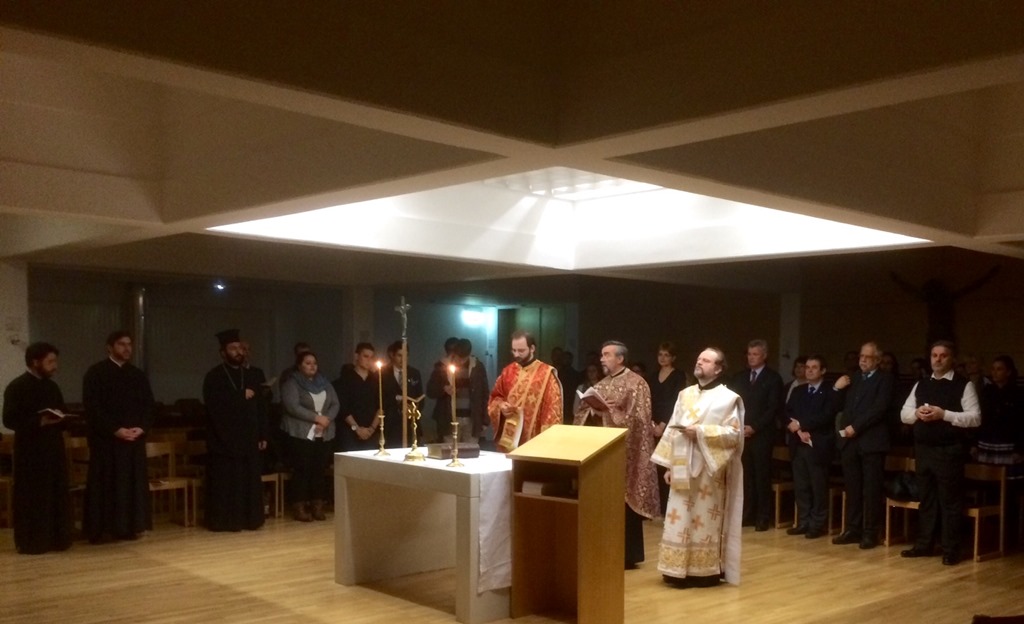 Τήν Δευτέρα 17 Νοεμβρίου ὁ Σεβ. Μητροπολίτης Αὐστρίας κ. Ἀρσένιος ἐπισκέφθηκε τήν Ἐκκλησιαστική καί Παιδαγωγική Ἀκαδημία τῆς Βιέννης, ὅπου παραχώρησε διάλεξη μέ θέμα «Ἡ Ἑνότητα τῆς Ὀρθοδόξου Ἐκκλησίας – Μία σύγχρονη πρόκληση». Ἡ ὁμιλία τοῦ Σεβασμιώτατου ἔγινε μετά ἀπό πρόσκληση τοῦ Διευθυντή Καθ. Hermann-Josef Röhring. Ἡ συνάντηση μέ σπουδαστές καί διδασκόμενους, ἀλλά καί Καθηγητές τοῦ Μαθήματος τῶν Θρησκευτικῶν ξεκίνησε μέ τήν τέλεση Ἑσπερινοῦ στό Παρεκκλήσιο τῆς Σχολῆς ἀπό τόν Πρωτοπρ. Νικόλαο Ντούρα καί τούς Ἀρχιδιακόνους π. Ἀθανάσιο Μπούκ καί π. Βίκτωρα Σιλόβσκυ. Οἱ ὕμνοι τῆς ἀκολουθίας ἐψάλησαν ἀπό τούς σπουδαστές σέ διάφορες γλῶσσες (Γερμανικά, Σερβικά, Ρουμανικά καί Ἑλληνικά).