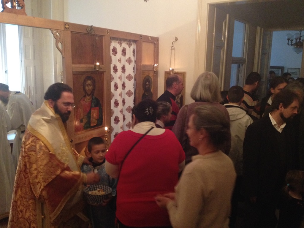 Μέ ἀφορμή τήν Ἑορτή τοῦ Προστάτου τῆς Μεγάλης τοῦ Χριστοῦ Ἐκκλησίας ὁ Σεβ. Μητροπολίτης Αὐστρίας καί Ἔξαρχος Οὑγγαρίας κ. Ἀρσένιος βρέθηκε γιά μία ἀκόμη φορά στήν Βουδαπέστη, ὅπου μαζί μέ τόν κλῆρο καί τό πλήρωμα τῆς Ἐξαρχίας τέλεσε τίς καθιερωμένες ἀκολουθίες. Ἀρχικά τέλεσε τόν Ἑσπερινό τό ἀπόγευμα τοῦ Σαββάτου στό Παρεκκλήσιο τῶν Ἁγίων Ἱεροθέου καί Στεφάνου καί μίλησε μέ τούς πιστούς γιά διάφορα πνευματικά θέματα, ἐνώ τήν ἑπόμενη μέρα στή θεία Λειτουργία στή μνήμη τοῦ πρωτοκλήτου τῶν Ἀποστόλων Ἀνδρέου, πού τέλεσθηκε στό Παρεκκλήσιο τῆς Ἐξαρχίας συλλειτούργησαν ὁ Ἀρχιερ. Ἐπίτροπος Οὑγγαρίας π. Ἰωσήφ Καλότα, ὁ Ἱερομόναχος Μαρτῖνος, ὁ π. Γρηγόριος Νάσινακ καί ὁ Ἀρχιδιάκονος π. Ἀθανάσιος καί παρουσία τῶν πιστῶν τῆς ἐνορία. Μετά τό πέρας τῆς θείας Λειτουργίας στό Σεβασμιώτατο εὐχήθηκαν γιά τά τρία ἔτη ἀπό τήν εἰς Ἐπίσκοπον Χειροτονία του στό Φανάρι.