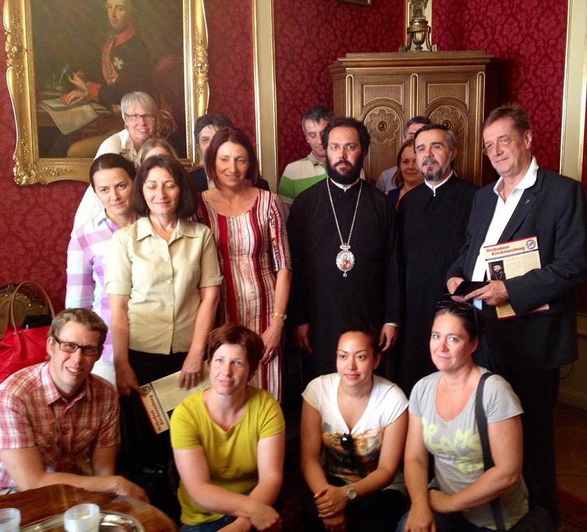 Τήν Τρίτη 1η Ἰουλίου ἐπισκέφθηκε ἀντιπροσωπεία τῆς Φρουρᾶς τοῦ Αὐστριακοῦ Στρατοῦ τή Μητρόπολη Αὐστρίας. Μέ τή συνοδεία καί τήν καθοδήγηση τοῦ Ἐπικεφαλούς τοῦ ρωμαιοκαθολικοῦ ἱερατικοῦ Σώματος Harald Tripp καί τοῦ ὀρθοδόξου στρατιωτικοῦ ἱερέως π. Ἀλεξάνδρου Λάπιν. Οἱ ἐπισκέπτες παρακολούθησαν τόν ἁγιασμό γιά τήν ἀρχή τοῦ μηνός στόν Καθεδρικό Ναό Ἁγίας Τριάδος ἀπό τόν Σεβ. Μητροπολίτη Αὐστρίας κ. Ἀρσένιο. Στή συνέχεια ξεναγήθηκαν οἱ στρατιωτικοί ἀπό τόν κ. Peter Mallat στόν καθεδρικό ναό, ὅπου προσοικειώθηκαν τά χαρακτηριστικά ἑνός ὀρθόδοξου χριστιανικοῦ ναοῦ. Μετά τήν ξενάγηση ὁ Σεβασμιώτατος ὑποδέχθηκε τούς ἐπισκέπτες στούς χώρους τῆς Μητροπόλεως Αὐστρίας.