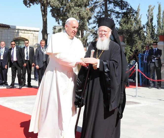 Τήν Κυριακή 25 Μαΐου συναντήθηκαν ἡ ΑΘΠ ὁ Οἰκουμενικός Πατριάρχης κ.κ. Βαρθολομαῖος μετά τοῦ Ἁγιώτατου Πάπα Φραγκίσκου εἰς Ἱεροσόλυμα. Συμπροσευχήθηκαν ἐνώπιον τοῦ Παναγίου Τάφου καί ἐνθυμήθηκαν τήν συνάντηση ἀγάπης, δι’ ἧς οἱ ἀείμνηστοι προκάτοχοί τους Πατριάρχης Ἀθηναγόρας καί Πάπας Παῦλος Στ΄ πρό 50 ἐτῶν ἐνταῦθα ἐπέφεραν μία στροφήν μετά τήν ὑπερχιλιετή διάσταση ἀνάμεσα στίς Ἐκκλησίες. Μέ μία κοινή δήλωση, πού ὑπέγραψαν, συνεδέθησαν μετά τῶν προκατόχων τους καί τῶν πρό 50 ἐτῶν συντελεσθέντων γεγονότων.